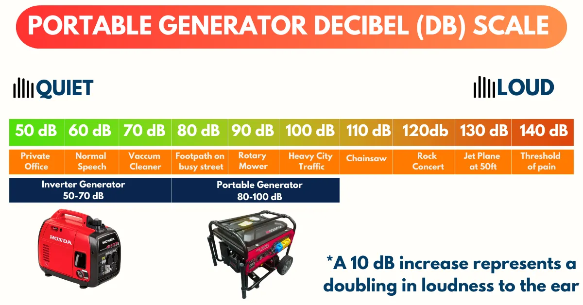 Portable generators: 65–90 dB (vacuum cleaner level).