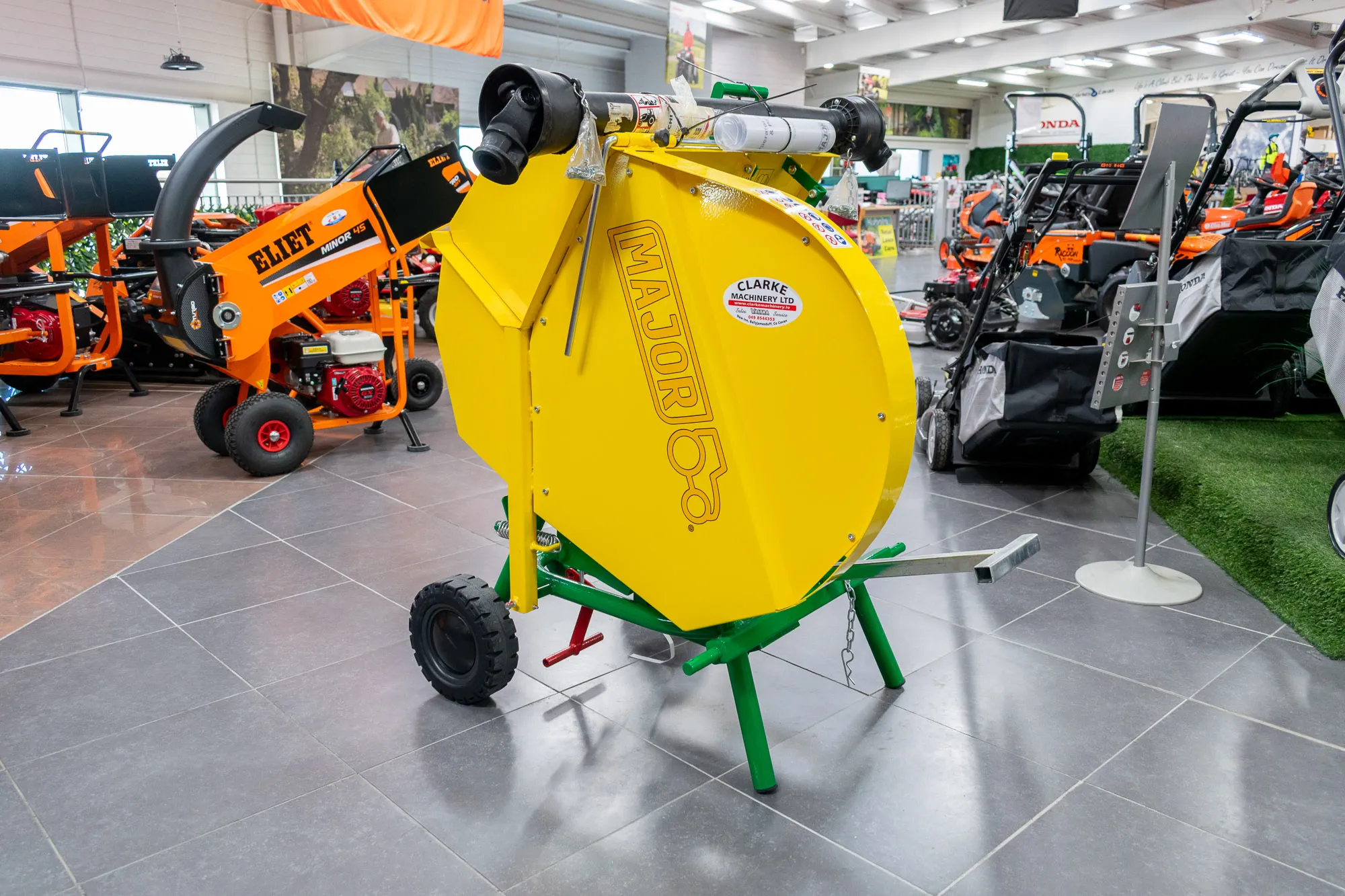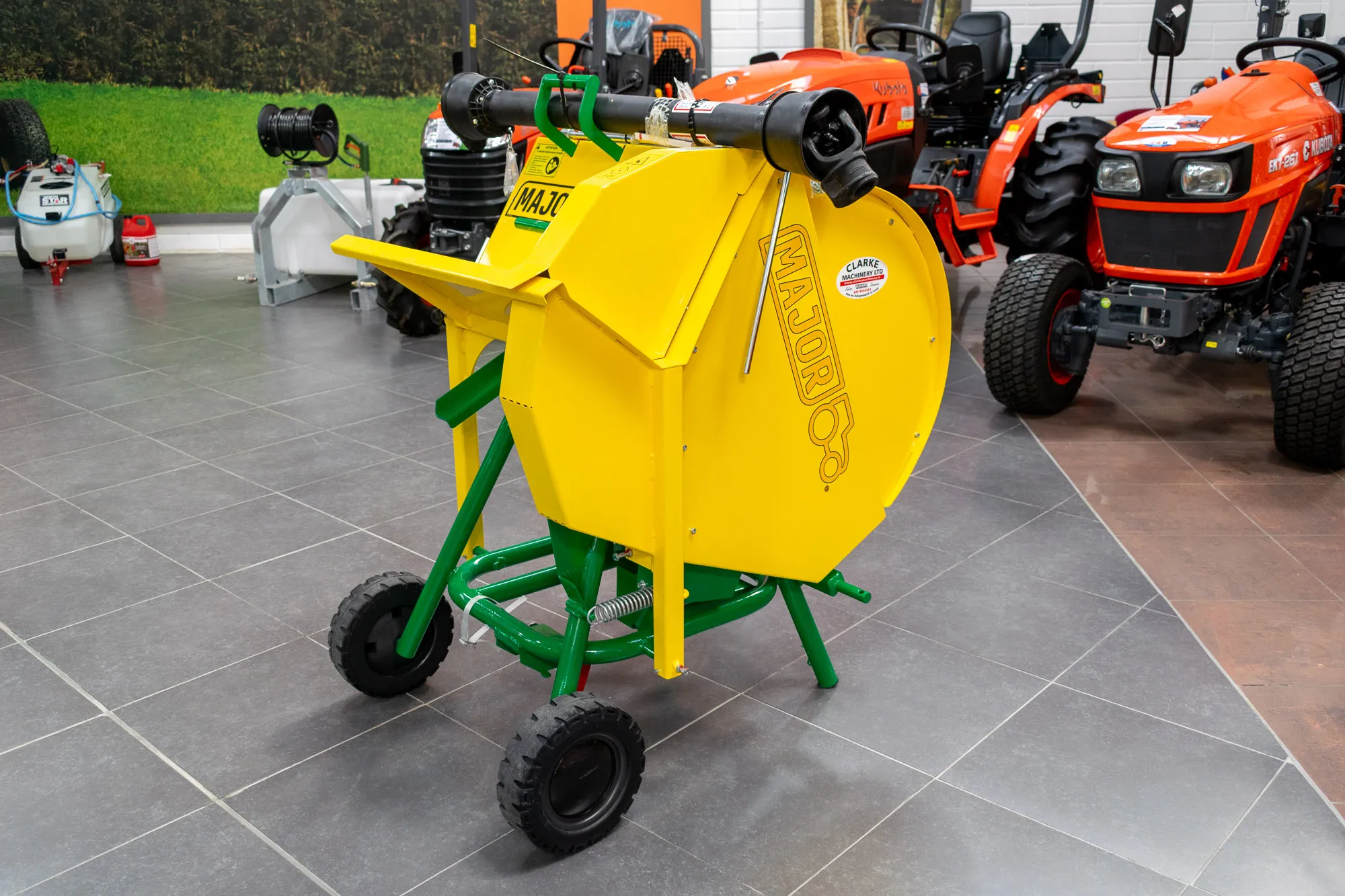 The MAJOR Swinging Saw Bench fits on the tractor’s 3 point linkage and can cut up to 28cm (11”) in depth.  It is equipped with a depth gauge and an extension piece for holding longer logs. The machine is fitted with wheels and an extending handle allowing the operator to easily tow the machine by hand into storage.