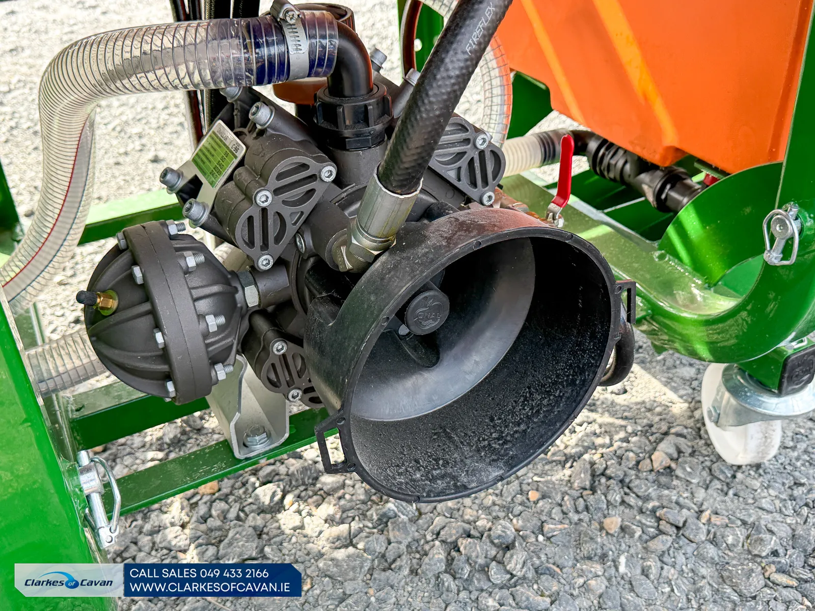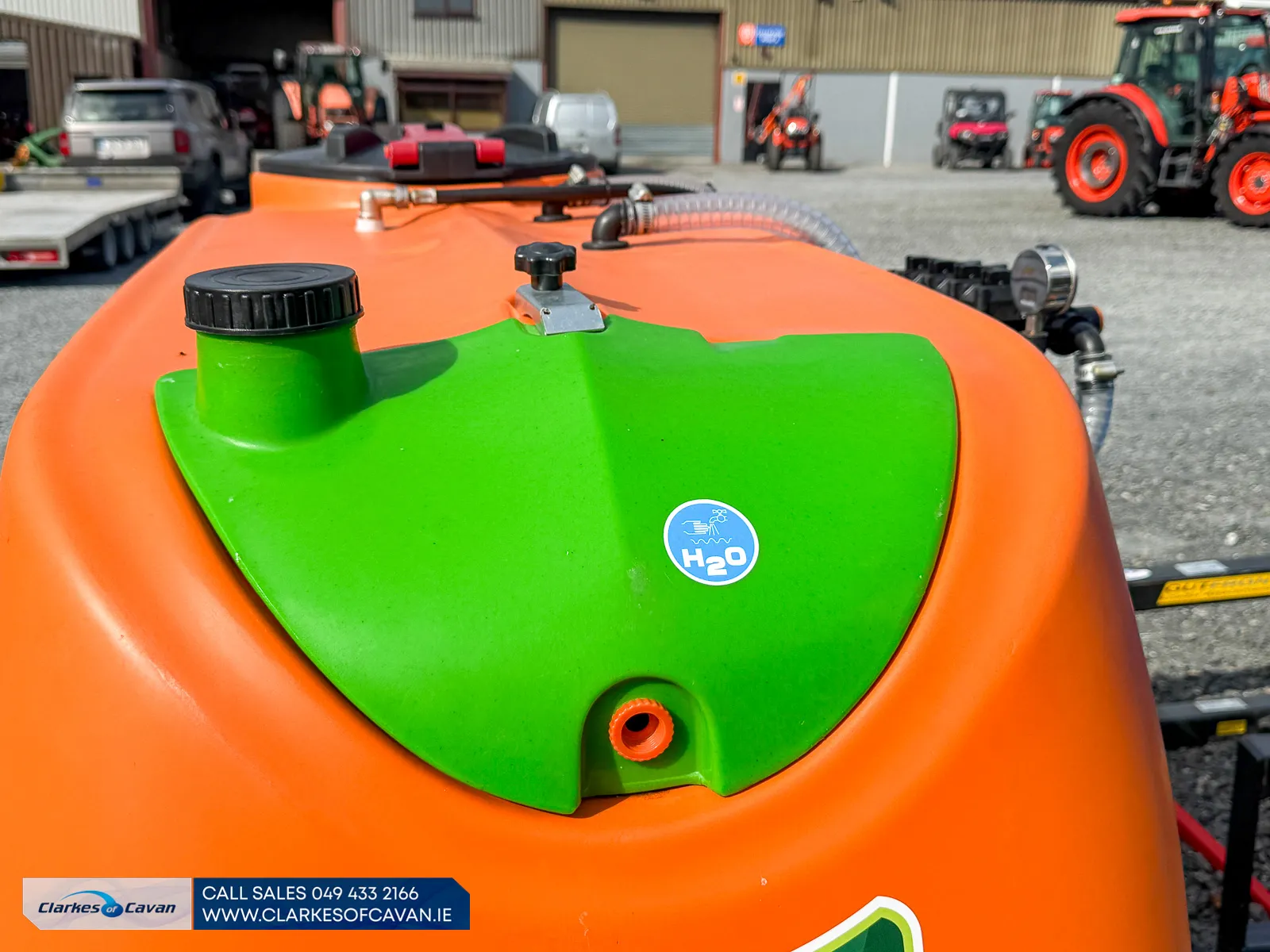 Galvanised and painted frames, Galvanised boom Tank made from reinforced polyethene, Diaphragm Pump, Anti-drip nozzle