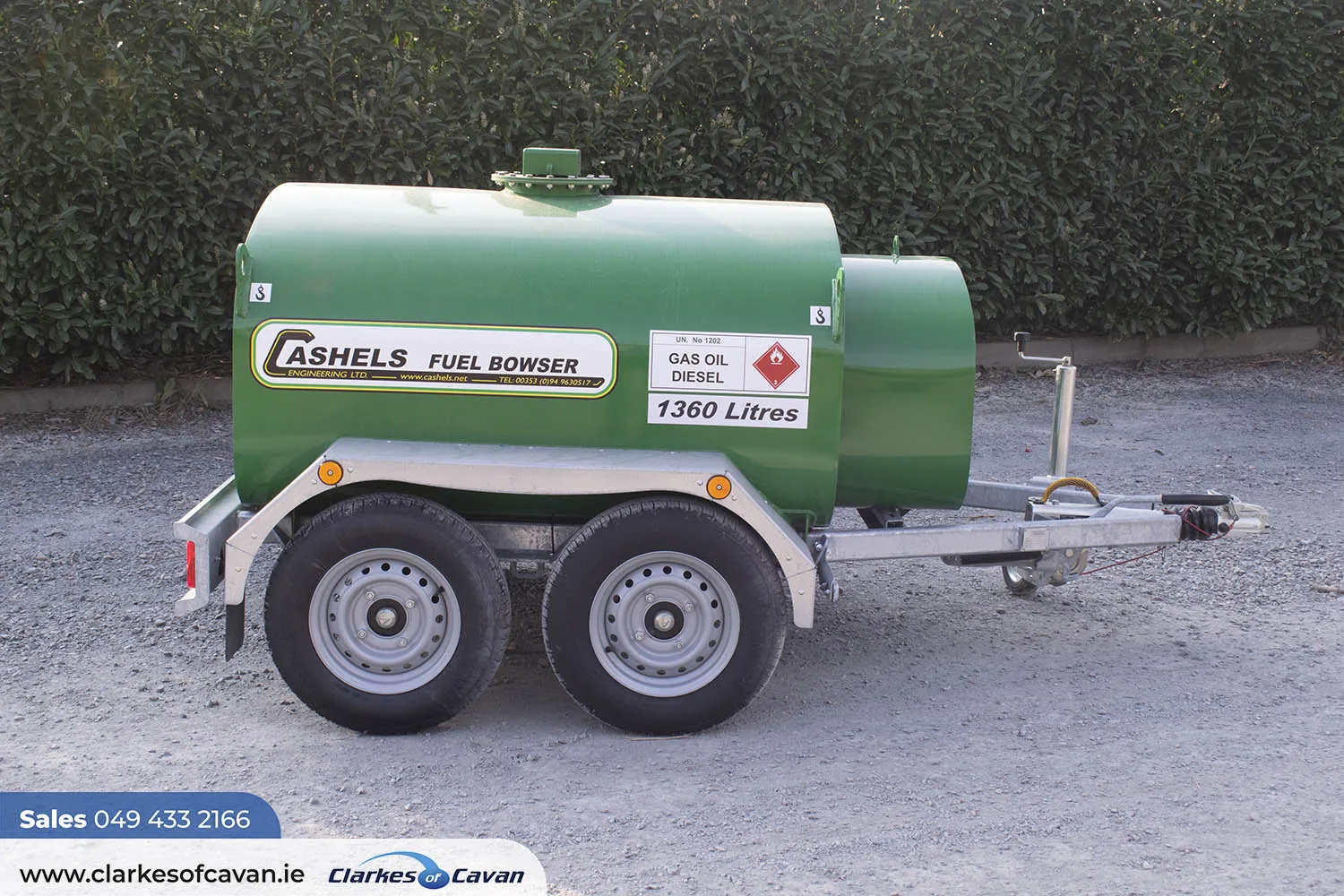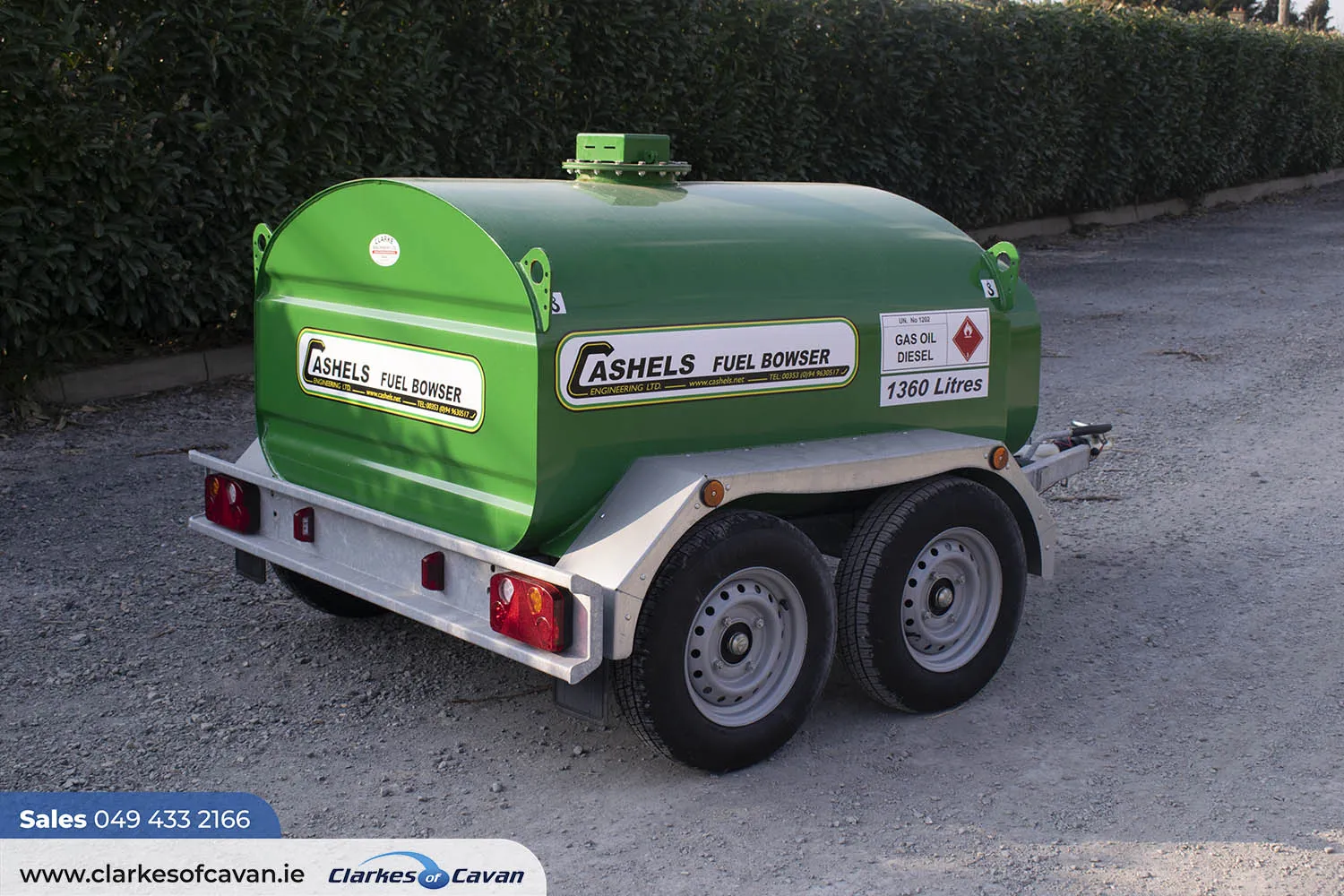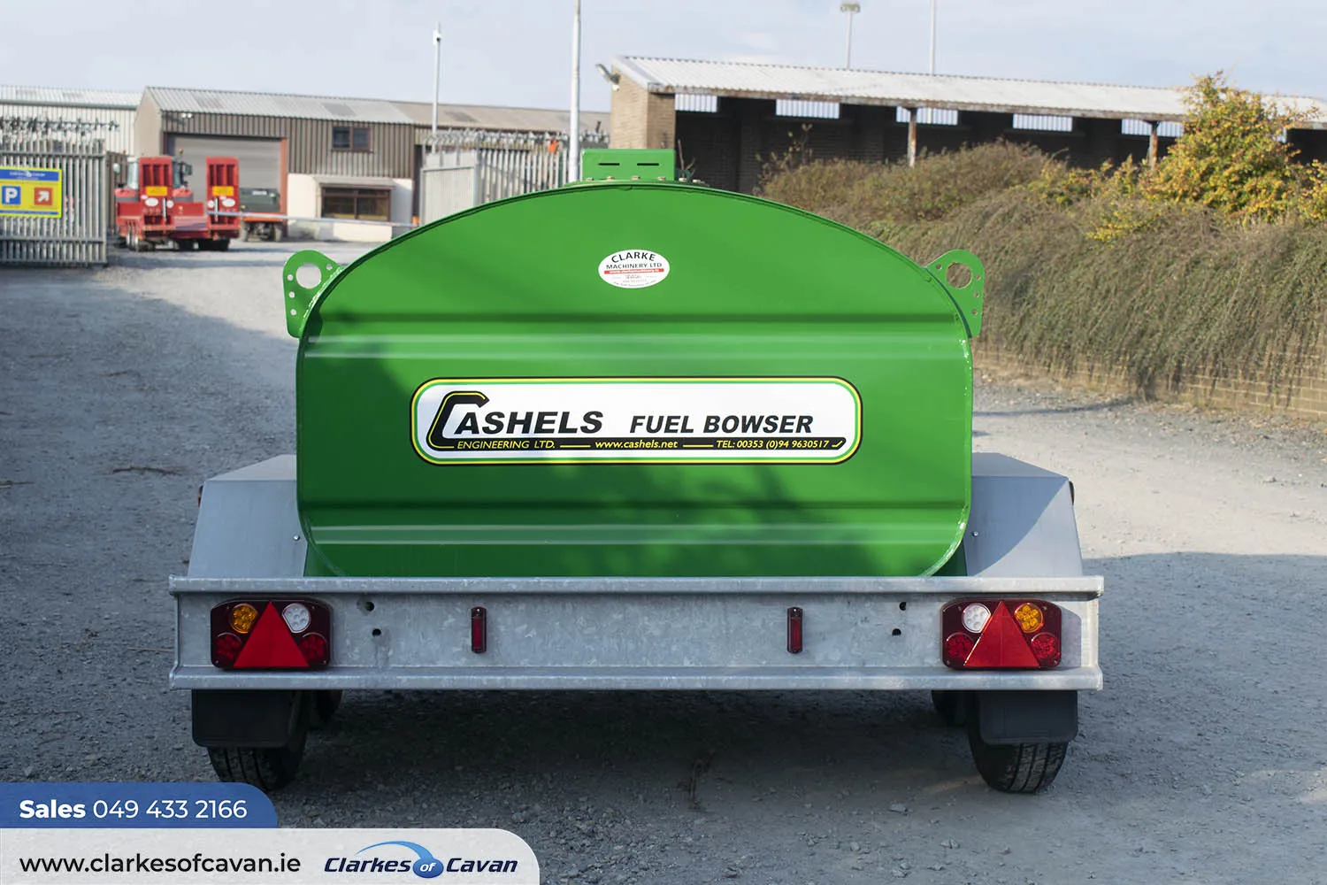 Cashels 1360 litres (300 gallons) twin axle fuel bowsers are available at Clarkes of Cavan.