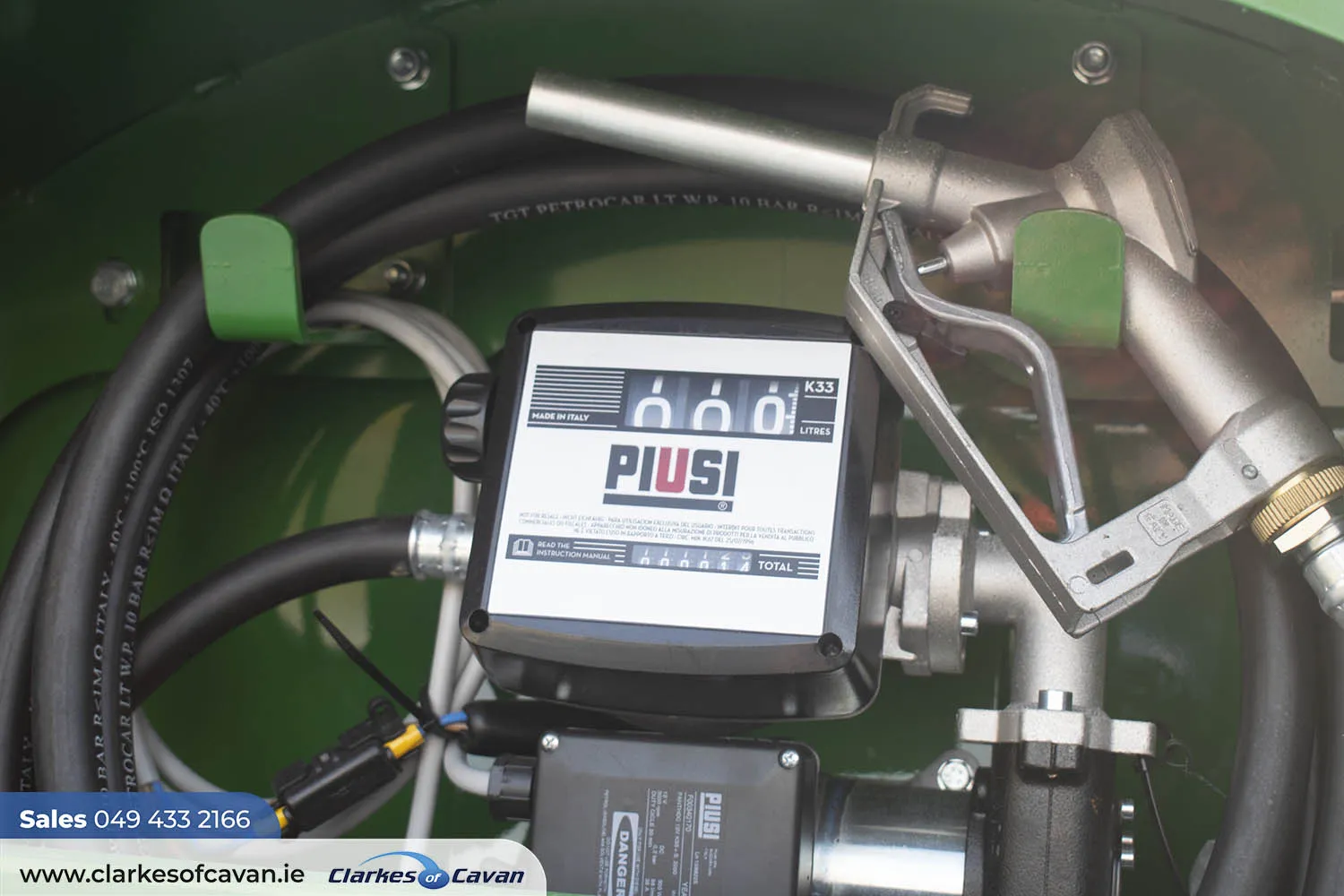 • Securely contained diesel fuelling system - 12v DC fuel pump (55lpm flow-rate), 3-digit flow meter, 6m of delivery hose.