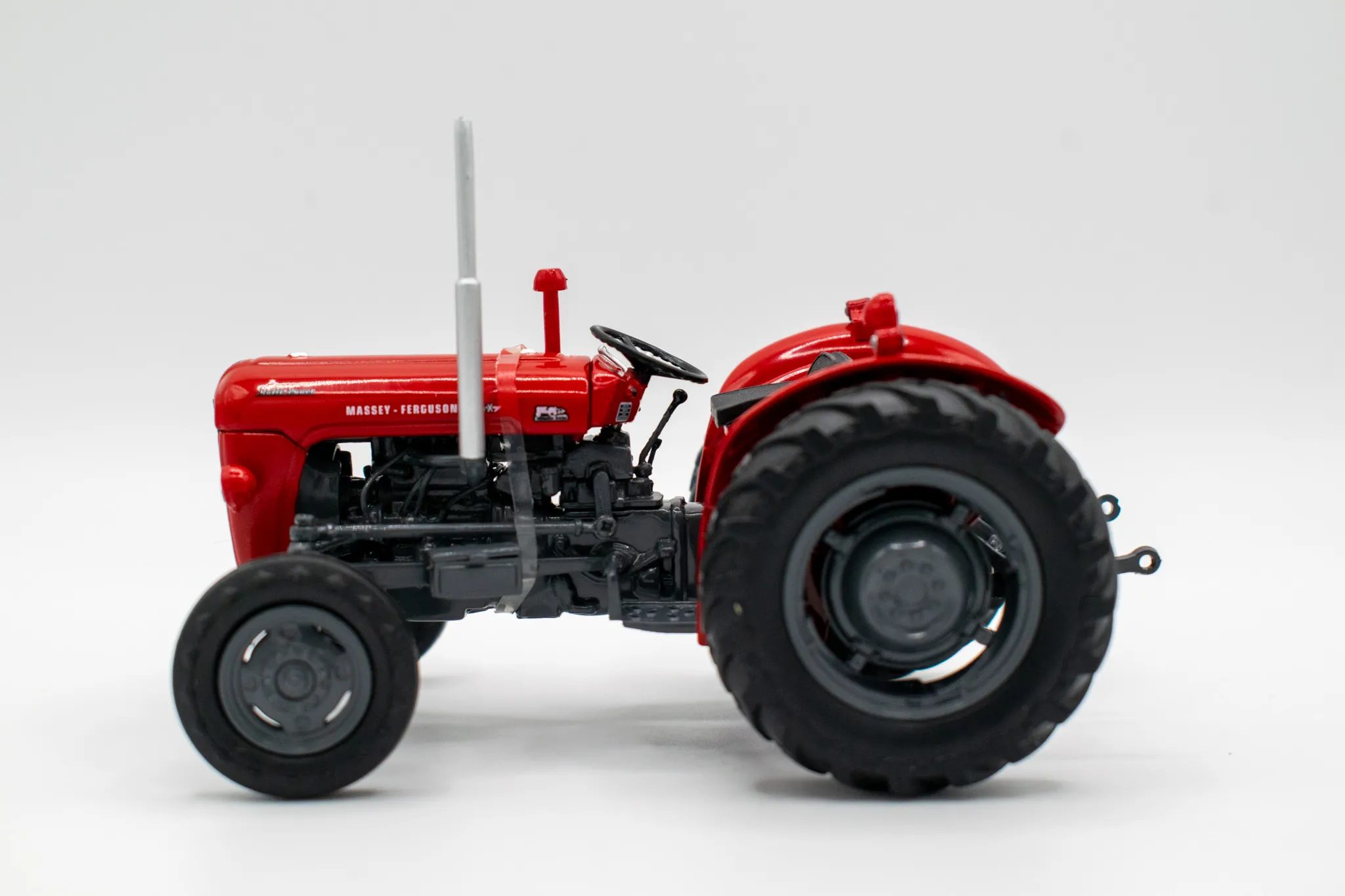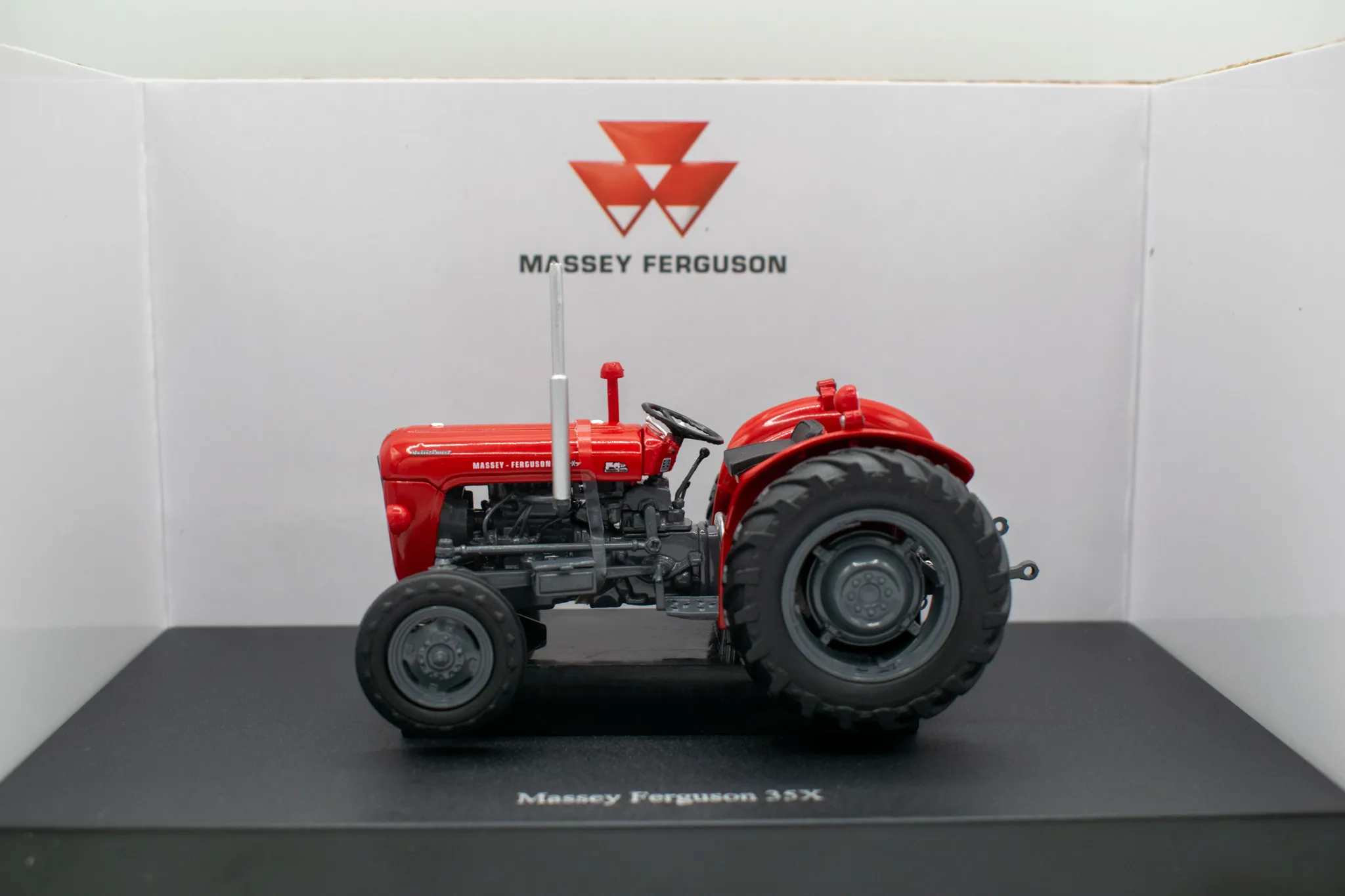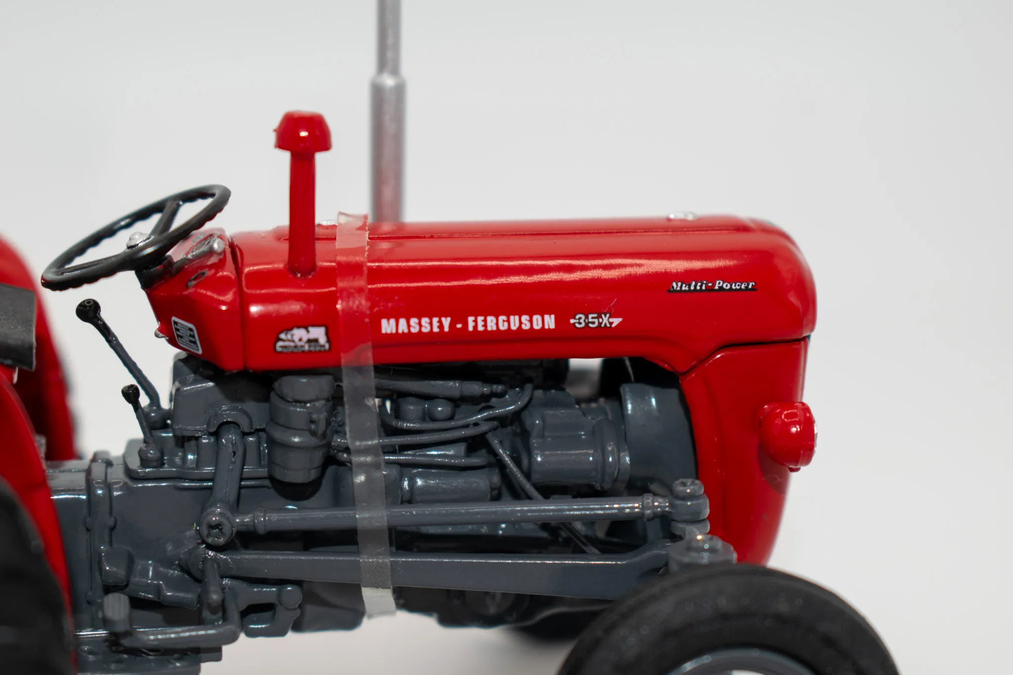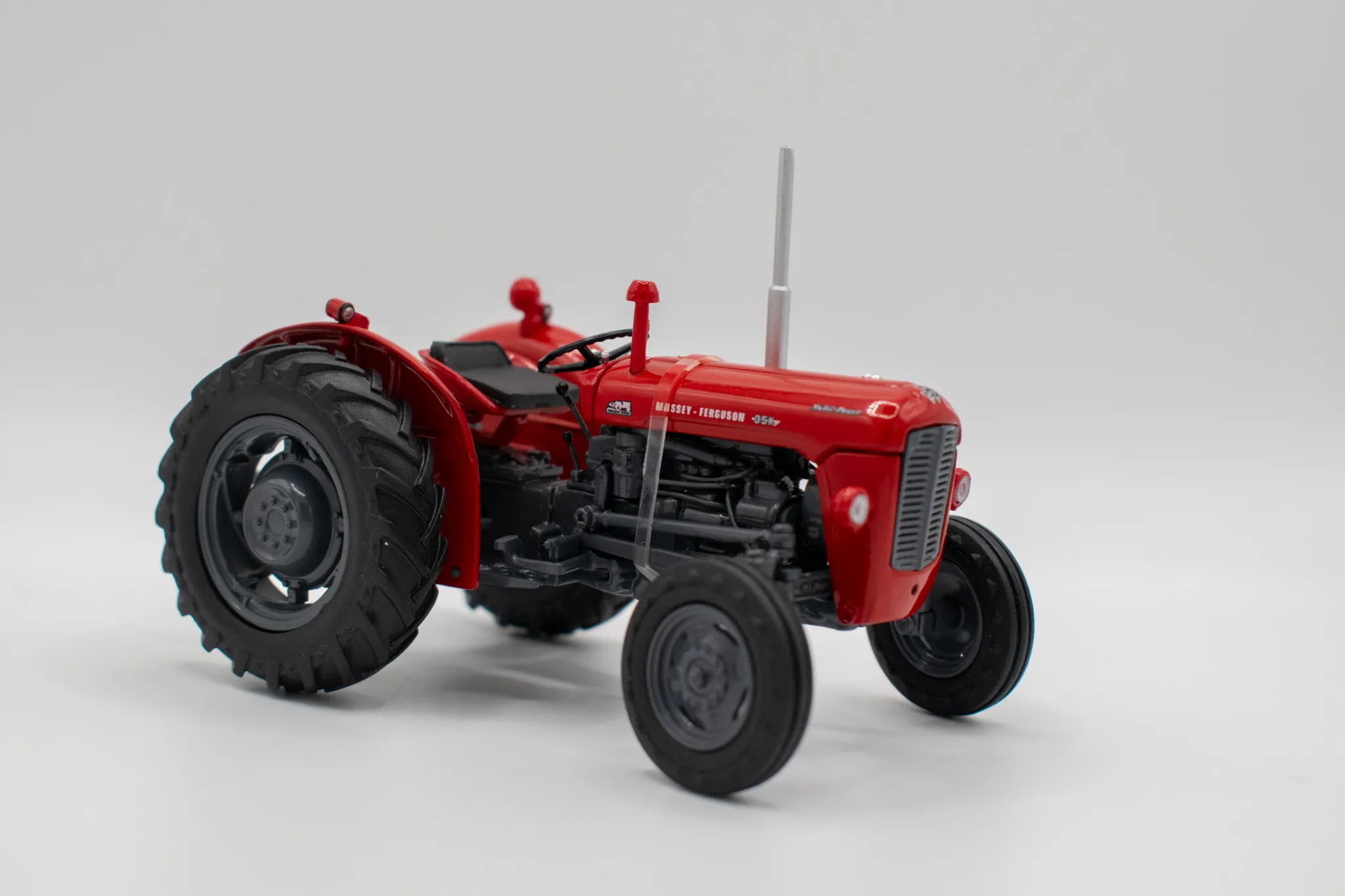 Massey Fergusson 35X vintage tractor. Includes features such as opening hood, working steering and open toolbox to the side of the engine.