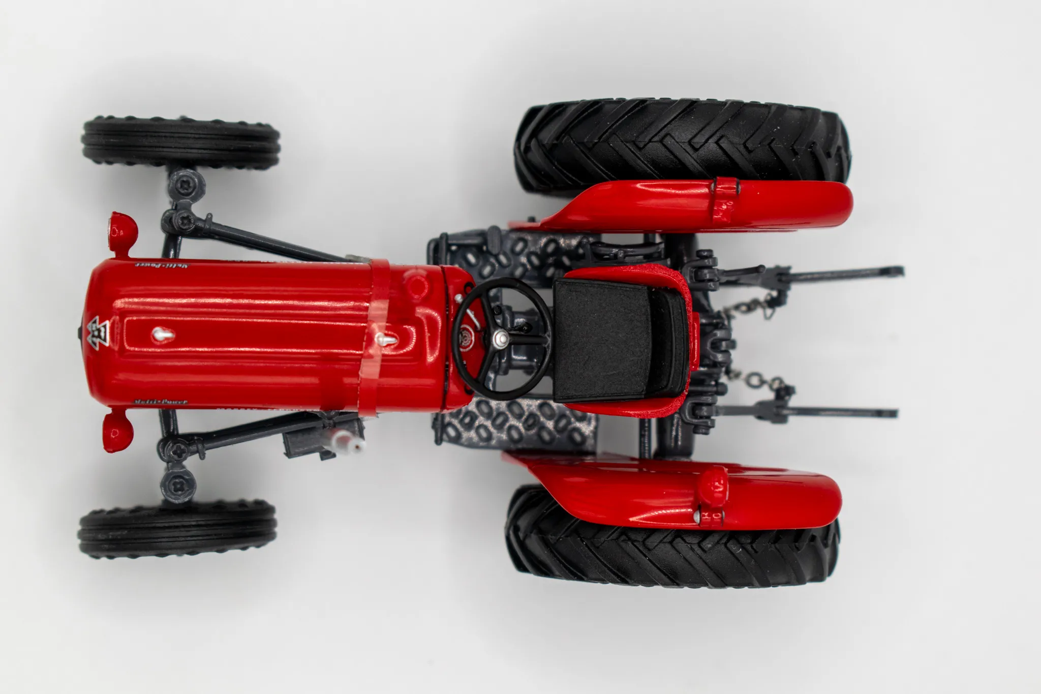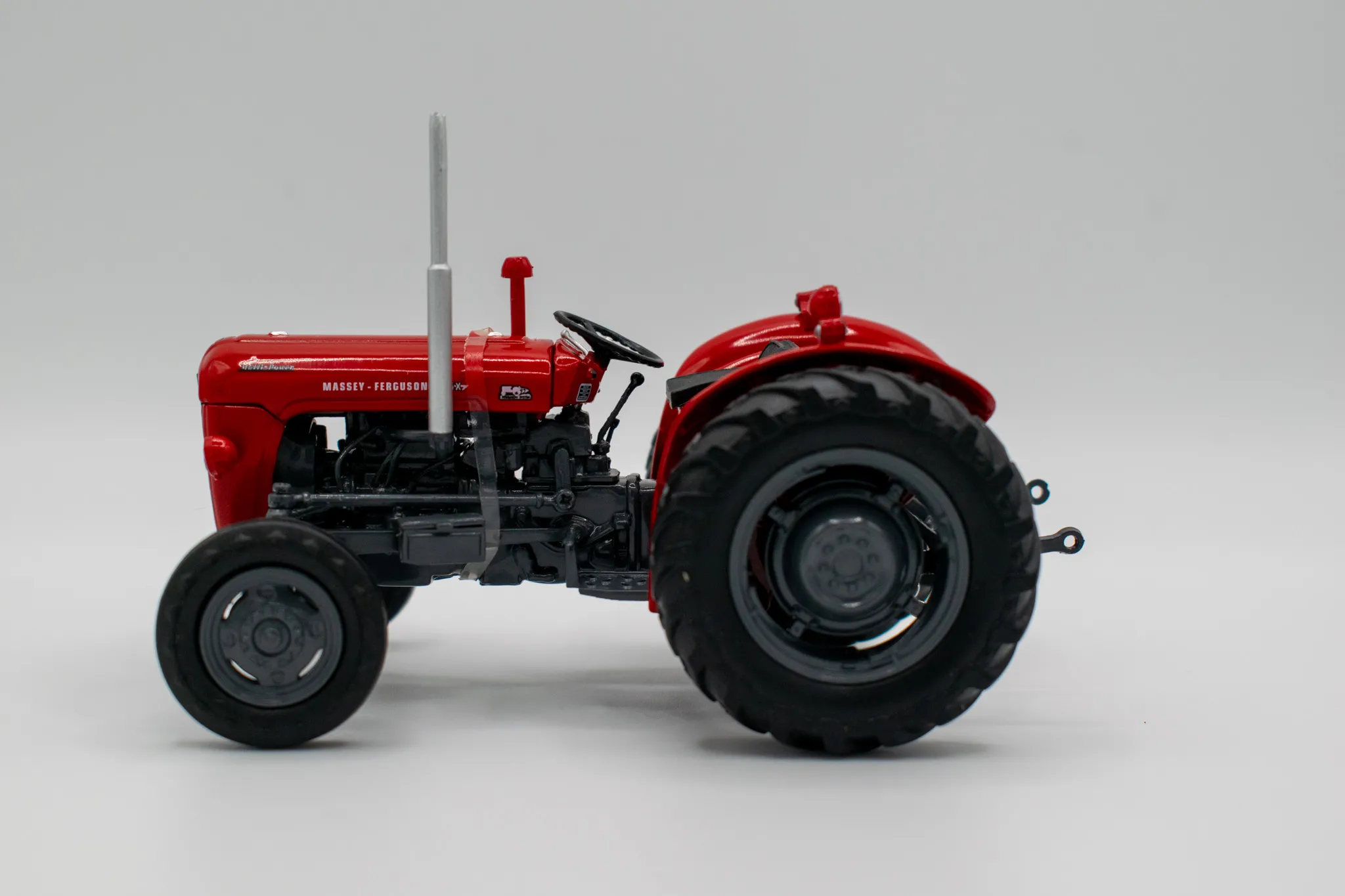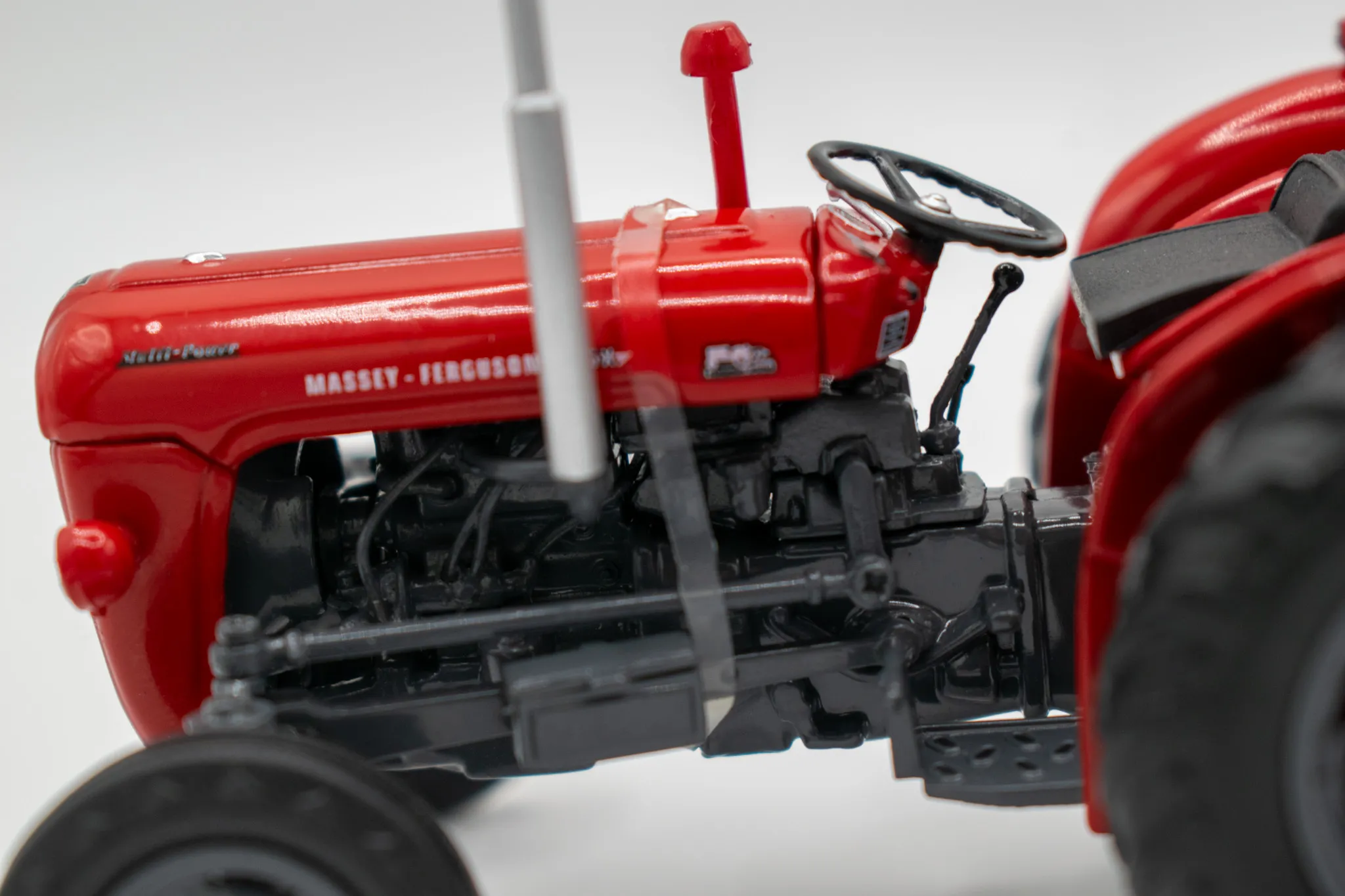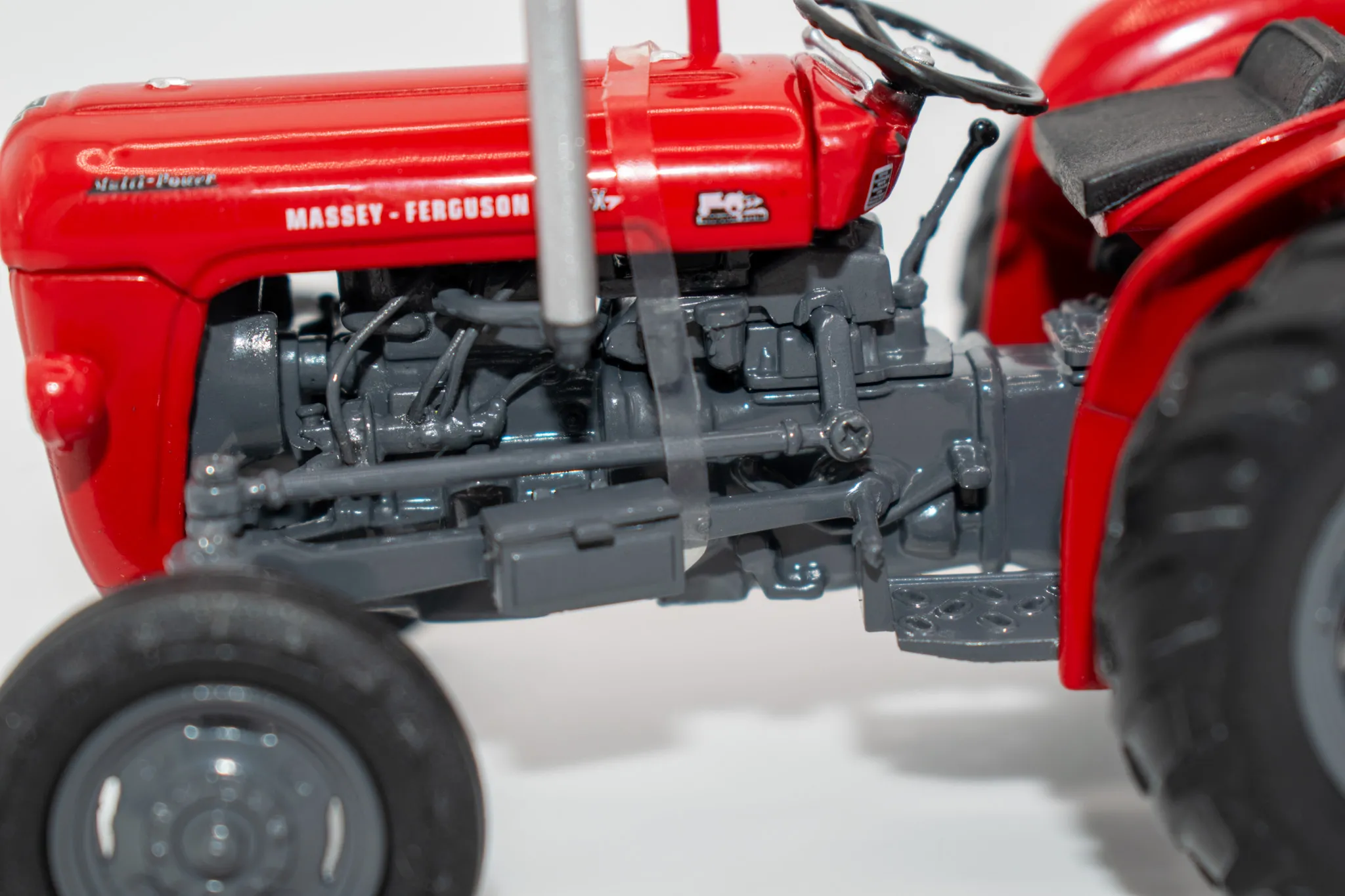 Massey Fergusson 35X vintage tractor. Includes features such as opening hood, working steering and open toolbox to the side of the engine.