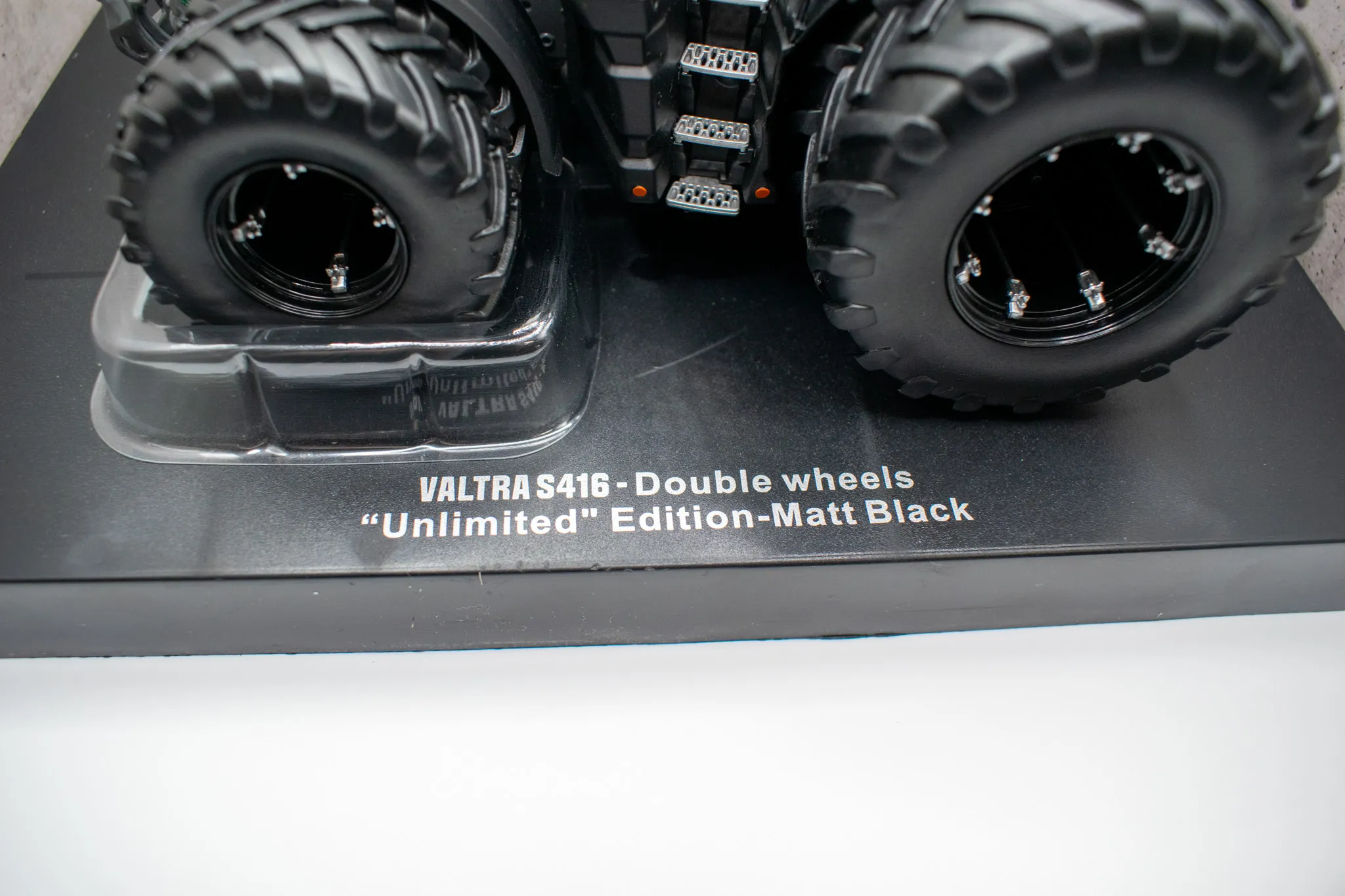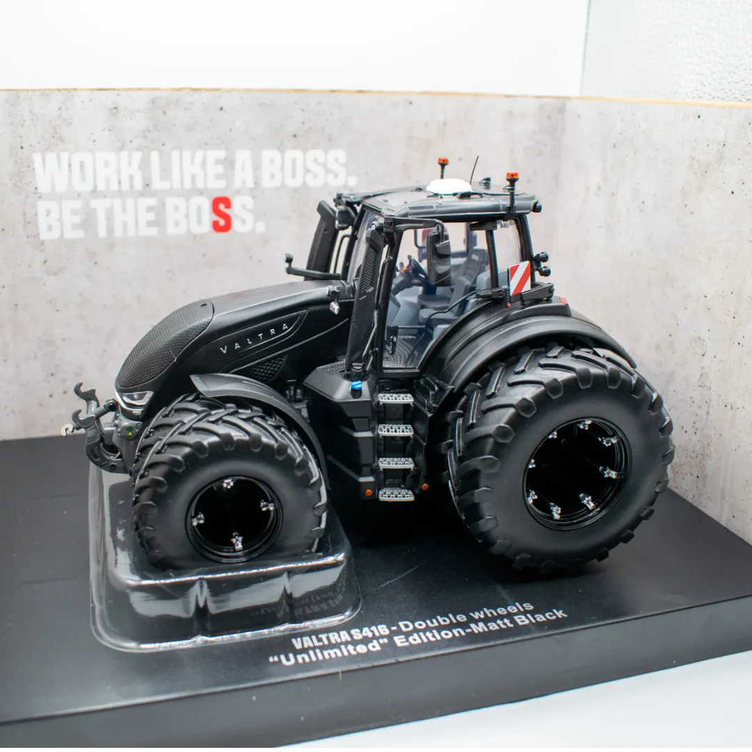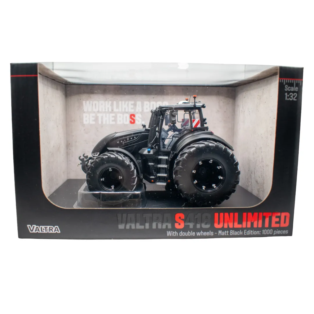 The Valtra S416 Unlimited in 1:32 scale is a high-quality collector's model with a striking matte black paint finish and dual wheels . This limited edition is a true highlight for model-making enthusiasts, collectors of modern agricultural machinery, and lovers of large tractors – manufactured by the established company Universal Hobbies.