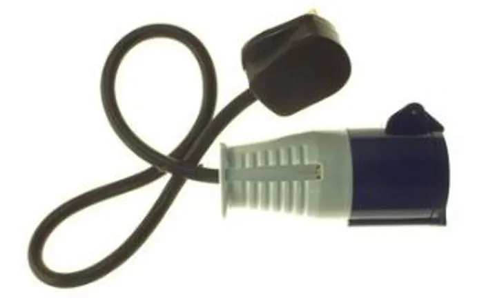 Adaptor from standard 13 A plug → 16 A blue socket