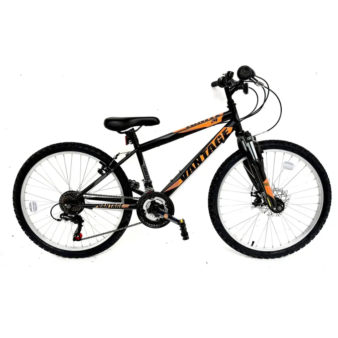 Ignite Vantage Matt Black/Neon Orange 24" Bike – 18-Speed Shimano Gears with V-Brakes & Front Suspension