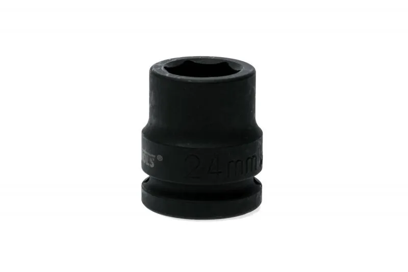 The Teng Tools 940524-C 24mm 3/4" Drive 6 Point Regular Metric Impact Socket is engineered for high-torque applications, providing superior performance and durability. Made from chrome molybdenum, this socket is designed to withstand the demands of power tool use. The black phosphate finish ensures easy identification and durability, while the ring and pin fixing hole on the female end secures the socket during use. The 6 point design ensures a secure fit on fasteners, reducing wear and the risk of rounding off corners.