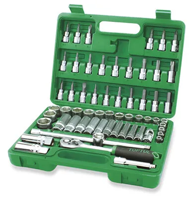 The Toptul 3/8" Drive Socket & Bit Set (QGCAI6001) includes 60 pieces of high-quality tools, featuring metric sockets, deep sockets, extension bars, spark plug sockets, a reversible ratchet handle, and a universal joint. Ideal for professional mechanics and DIY enthusiasts.