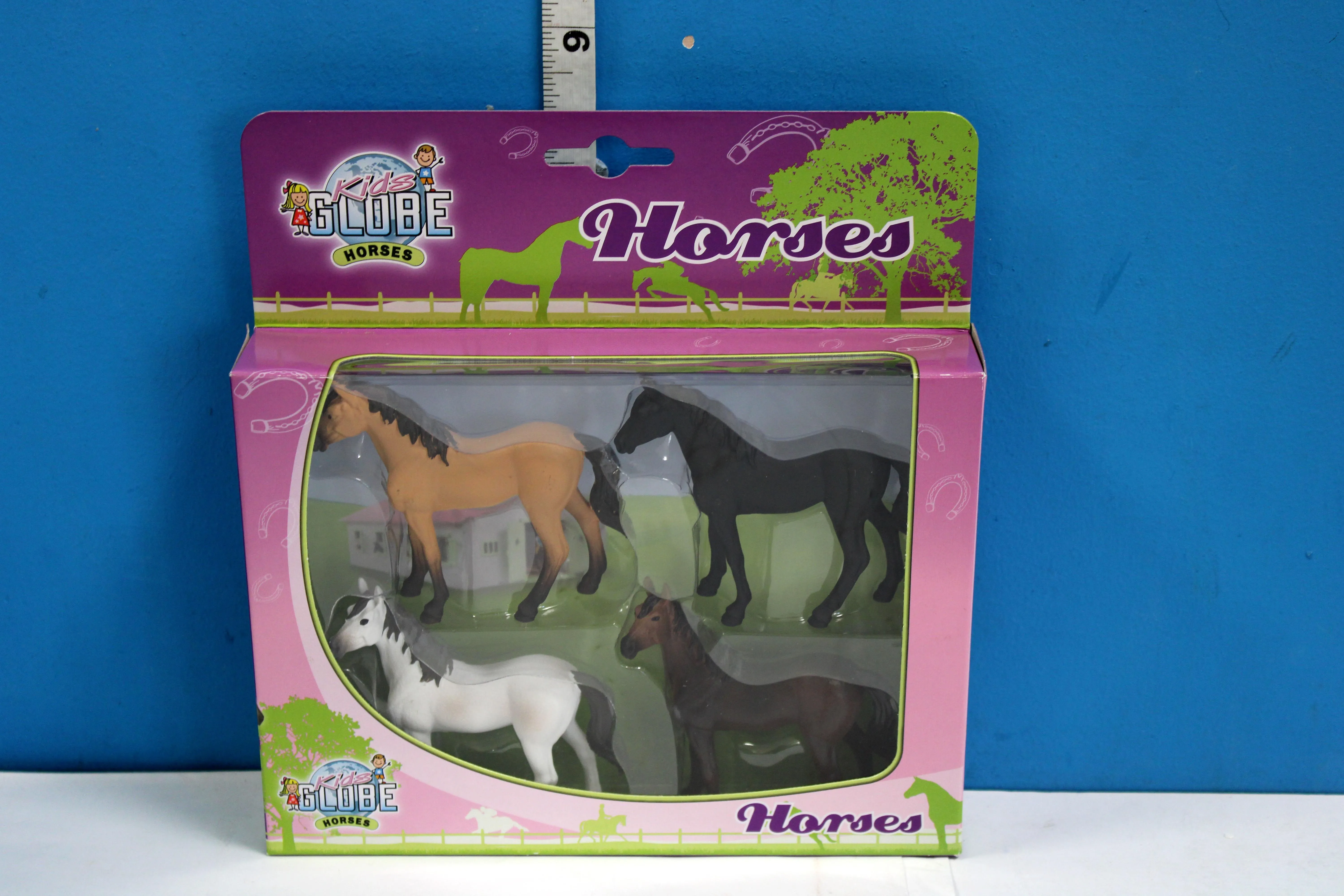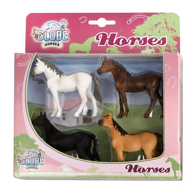 Enhance your child’s farm and stable playtime with the Kids Globe Horses 1:32 Scale set. This set includes four realistically designed horse figurines that are perfectly sized to fit any Kids Globe 1:32 scale playset. Made from durable plastic, these horses are ideal for imaginative play, helping kids create their own farm adventures and learn about animal care.
