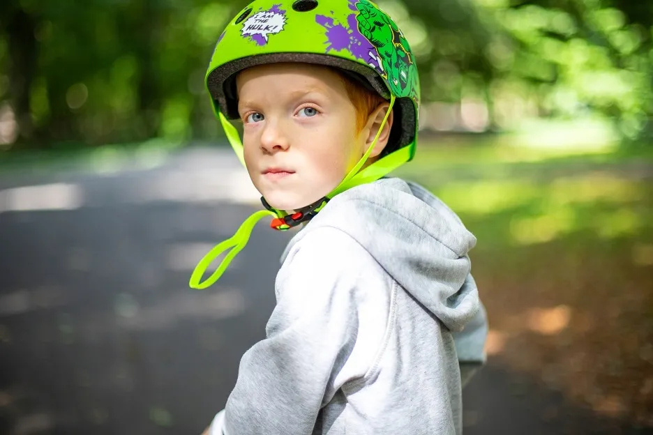 Give your child superhero-level protection with the Disney Hulk helmet. Lightweight yet strong, it’s built with ABS and EPS materials for cycling and skating safety.