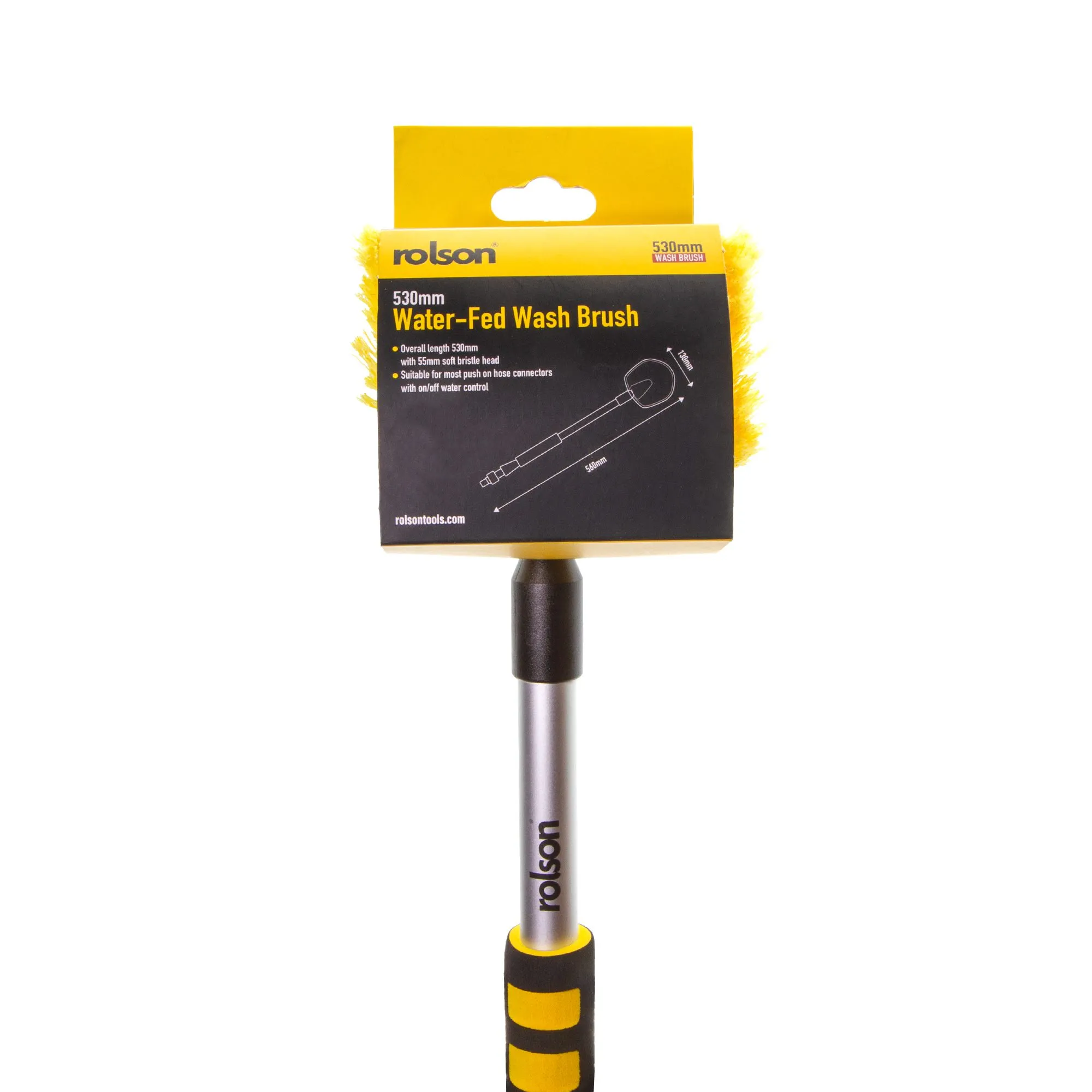 This all-purpose wash brush is ideal for cleaning cars, boats, caravans, trucks, vans, mobile homes, house conservatories and many other applications. The soft bristle head prevents scratching while the water feed helps remove dirt and debris. The unit itself is 530mm long with an adjustable head. It has a strong aluminium shaft and robust plastic head with on/off switch. It has a soft cushioned grip for added extra comfort and also insulates your hands from the cold water running through the handle. It comes with a quick release connection (this fits most standard hose connectors).