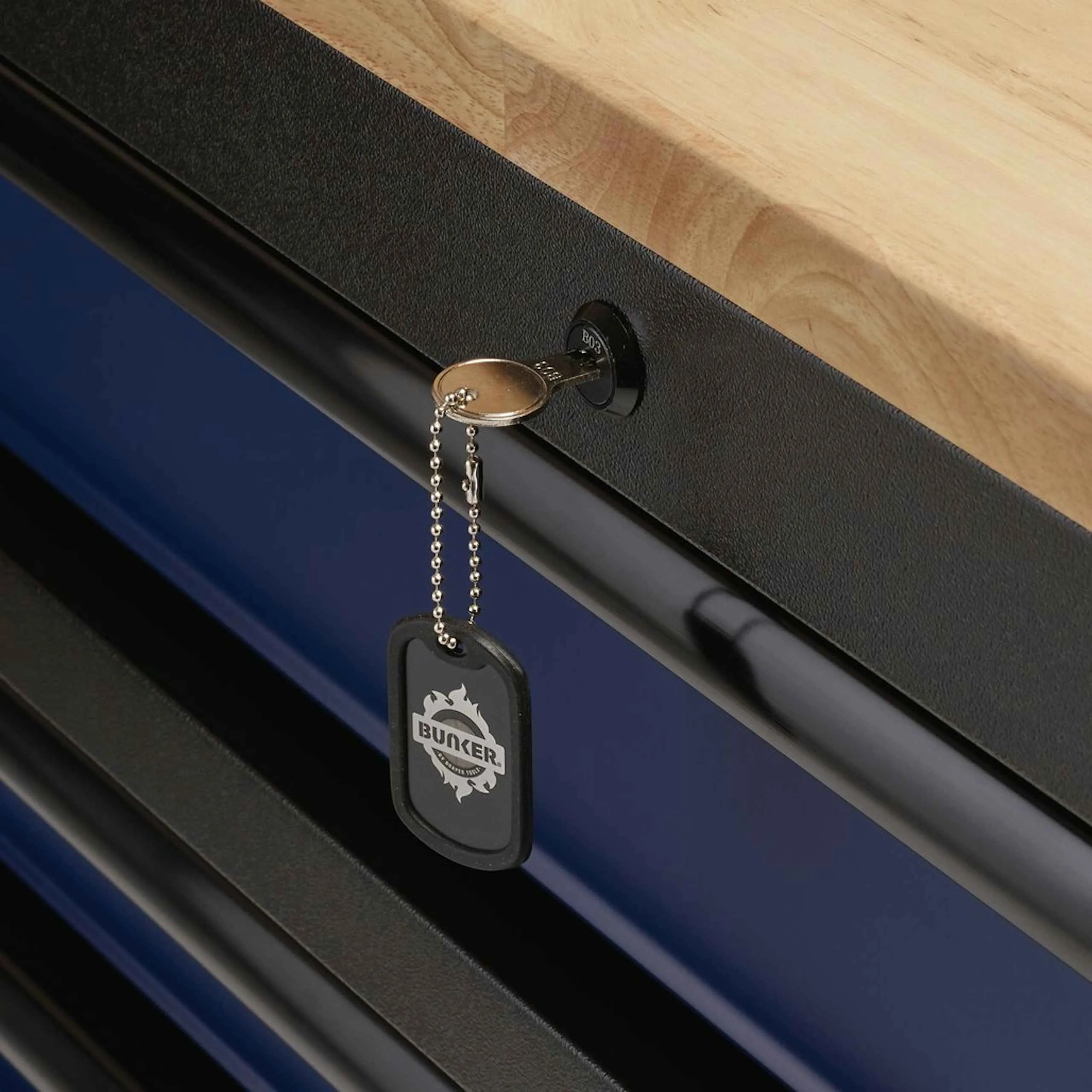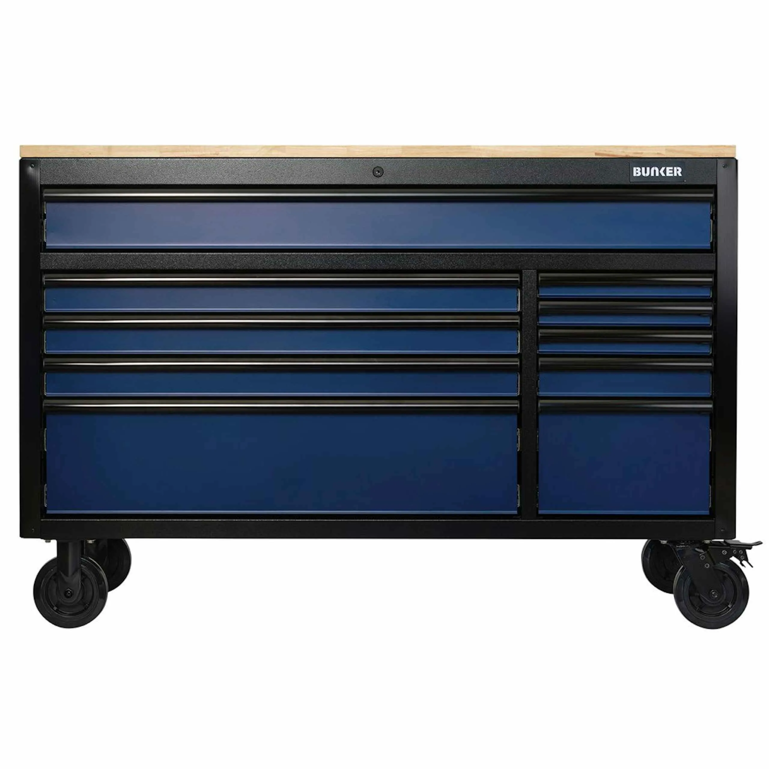 Topped with a 25mm-thick hardwood work surface, this 56 inch roller cabinet and tool box doubles as a functional workstation, ideal for precision work, assembly, and everyday tasks. Start your journey with BUNKER and elevate your workspace with a tool storage solution built to last.