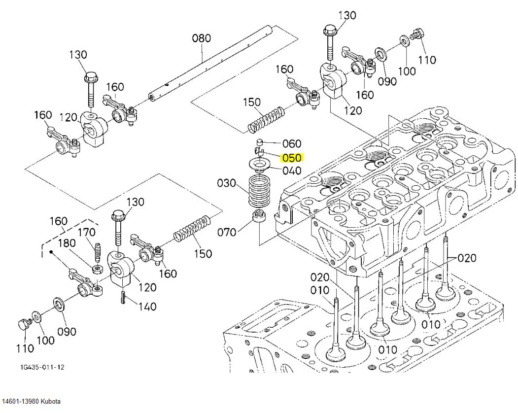Secure valve springs accurately with the Kubota valve spring collet 14601‑13980. This precise OEM fit part retains the valve spring on the valve stem within rocker arm assemblies, providing proper alignment and tension for efficient engine operation. Compatible with a wide range of Kubota tractors, generators, and utility vehicles.