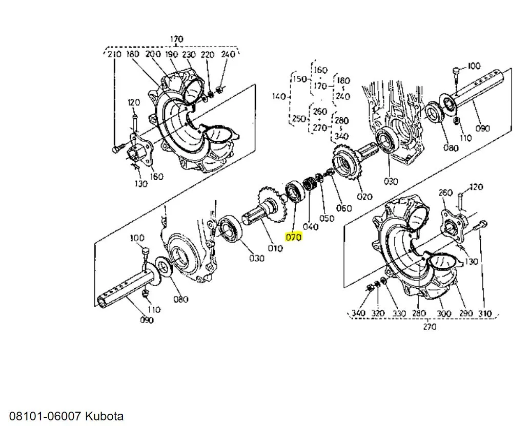 The Kubota 08101-06007 Ball Bearing is a precision-engineered, factory-approved component used in various drivetrain assemblies across numerous Kubota tractors and utility vehicles. Whether supporting the PTO drive shaft, bevel gear, or front/rear axle, this ball bearing ensures smooth rotational movement and reduces wear on connected components.