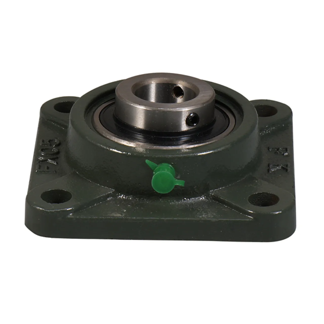 High quality medium duty 2 1/8" bore 4-bolt flange block bearing. The bearing has a wide inner ring with two set screws for attaching to the shaft. Housing is cast iron with a grease fitting for re-lubing the bearing. Medium duty bearings have larger housings and larger OD bearings than standard duty bearings. This design allows larger loads for the same sized shaft.
