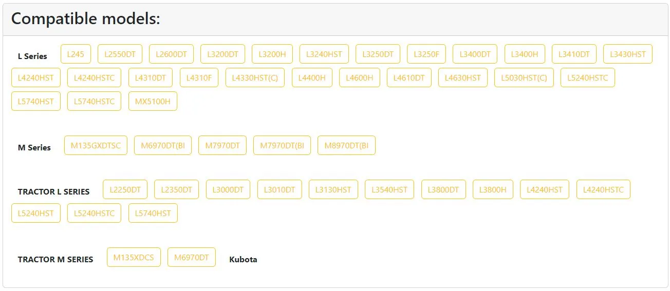 Wide Compatibility: Suitable for multiple Kubota tractor and excavator models.