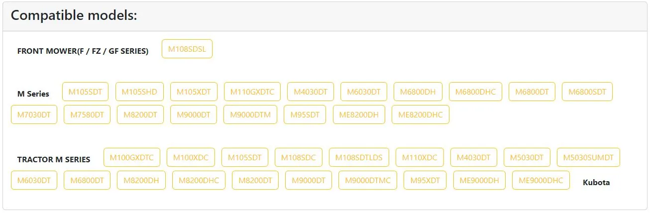 Wide Compatibility: Supports a variety of Kubota M Series tractors with advanced drivetrain configurations.