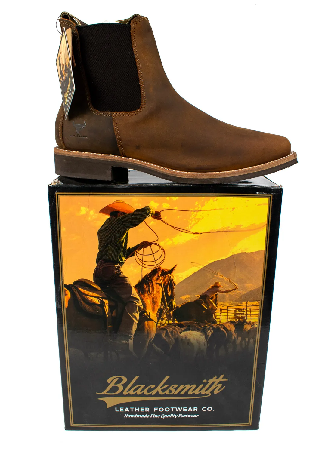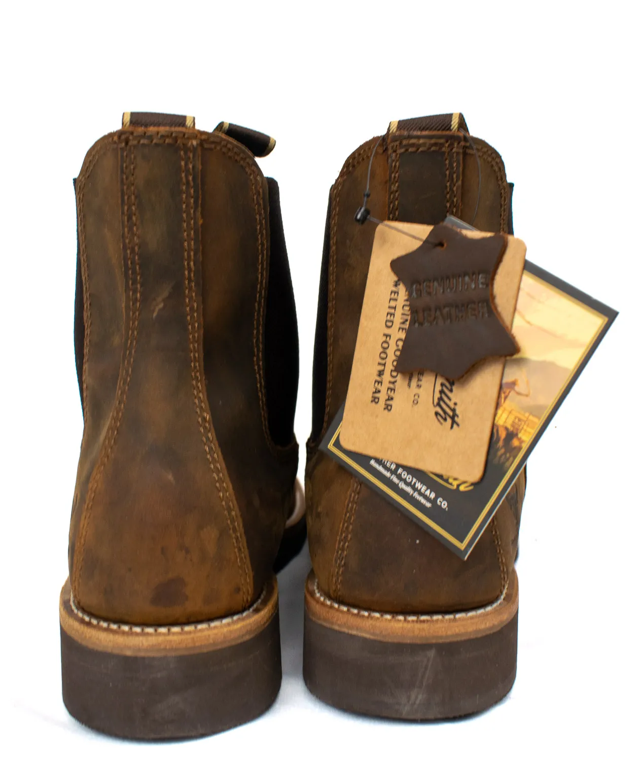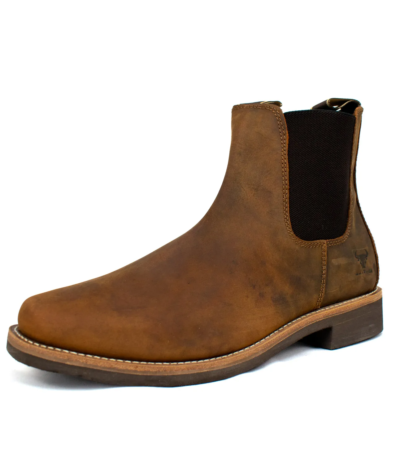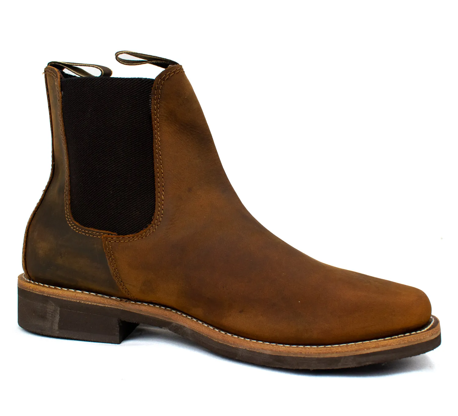The Blacksmith Men’s Dealer Boots in waxed tan leather offer a perfect blend of durability, comfort, and classic style. Designed for work or casual wear, these slip-on boots feature premium leather, a sturdy sole, and elastic side panels for easy on-and-off convenience.