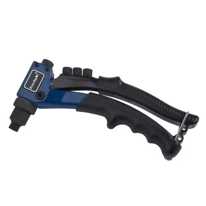 The Blue Spot Tools 200mm (8") Compact Heavy Duty Riveter is ideal for industrial and DIY use. Suitable for use with steel, aluminium or stainless steel rivets to join several material types. Features 4 nozzle pieces: 2.4, 3.2, 4.0 and 4.8mm. The heavy-duty ergonomic handles help to minimise hand fatigue. 3 piece alloy steel jaws for improved rivet grip