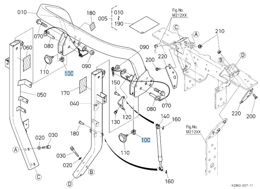Although modest in size, this bracket is crucial for safety. Loose or missing ROPS retainers can lead to fatigue, damage, or even failure of the protective structure under stress. It is an OEM replacement for part K2591‑39560.