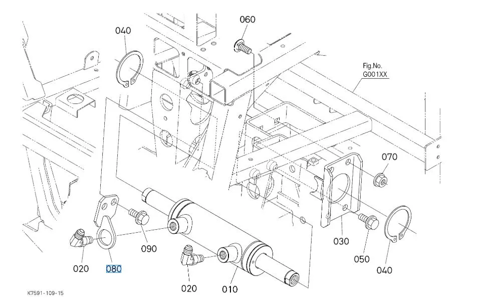 K7591‑16632 Kubota Right‑Hand Steering Cylinder Bracket — OEM