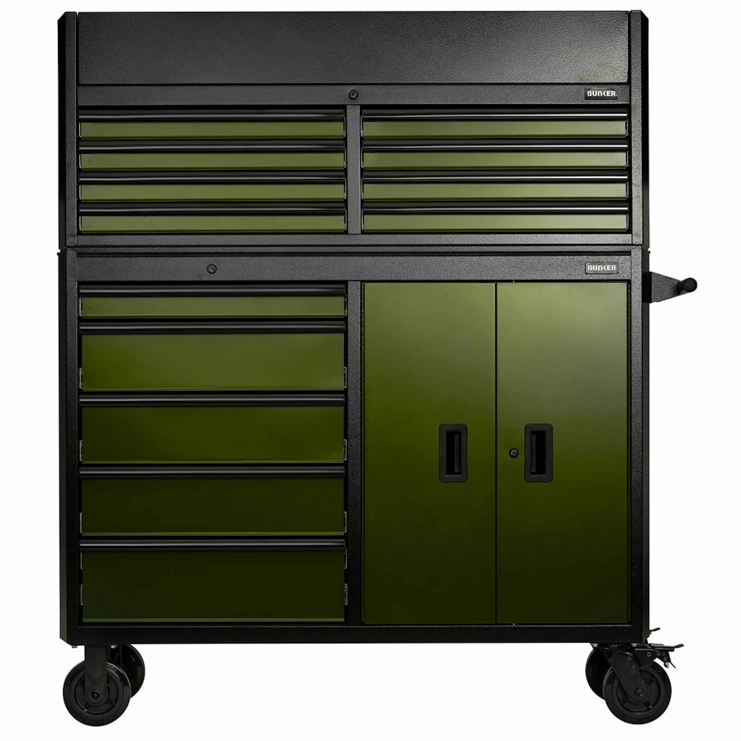 BUNKER 13 Drawer Combined Roller Cabinet and Tool Chest 52" Green