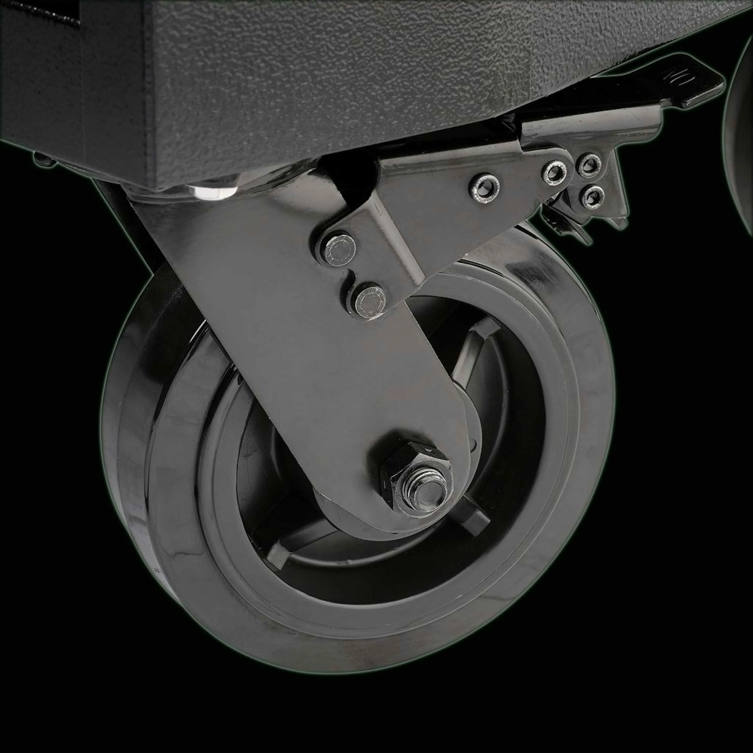 Designed for flexibility, this 72 inch tool box and chest can also function as a mobile unit. It’s equipped with a durable steel handle and four heavy-duty castor wheels, two of which include brakes for added stability when stationary.