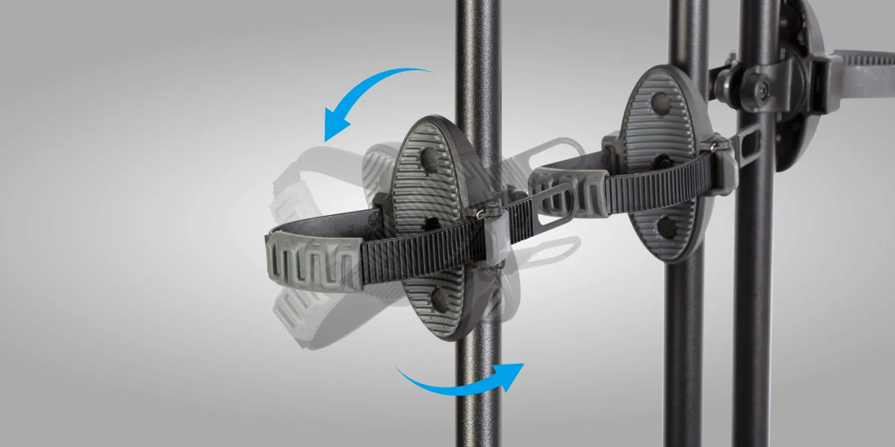 Features ratchet-style rotating frame cradles that are padded and gentle on carbon frames.