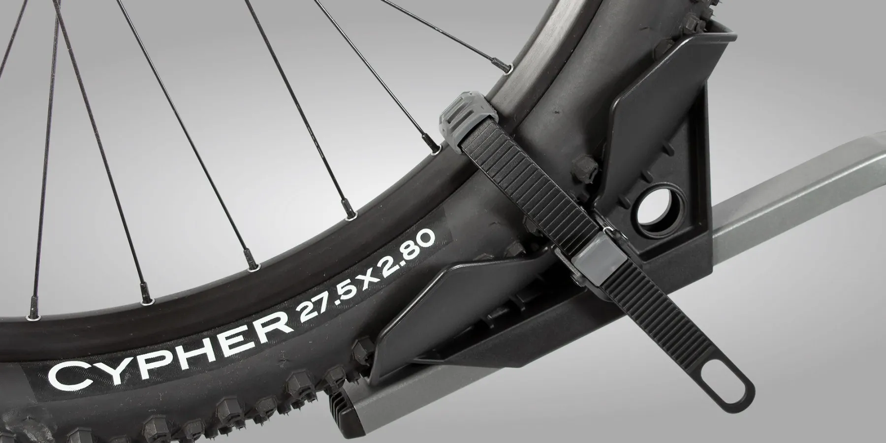 Accommodates most wheelbases, including small children’s bikes, with reversible wheel supports and wide rubber-padded straps (up to 3.25" tyres).