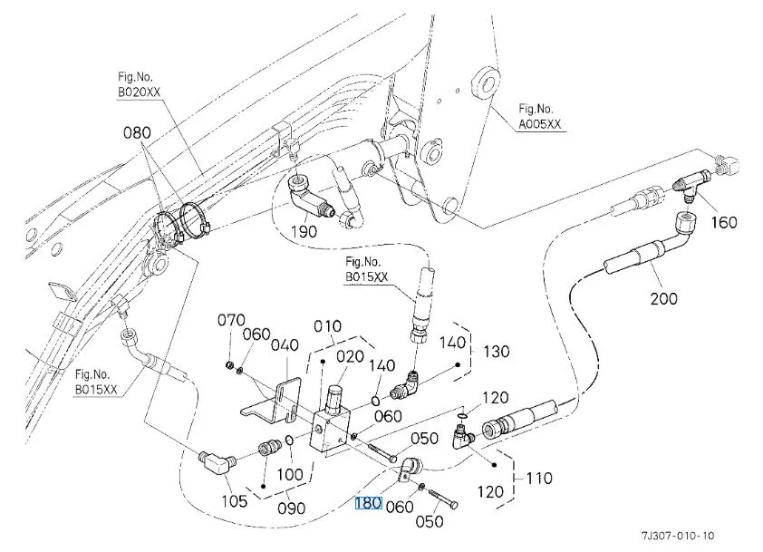 Oil piping – Arm & Bucket circuits