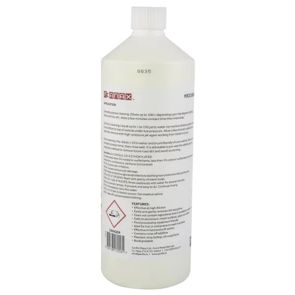 The MCANAX Oil Cleaner and Degreaser – 1 Litre (MX3100001) is a versatile, all-purpose cleaning solution suitable for a wide range of surfaces. From commercial vehicles to food processing equipment, this biodegradable degreaser tackles grime, oil, and dirt without harming metals, plastics, glass, or rubber.