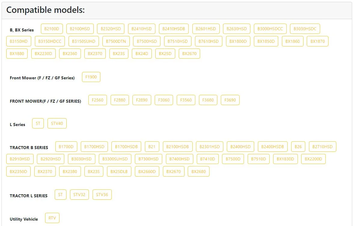 Wide Compatibility: Fits numerous Kubota tractors, mowers, and RTVs.