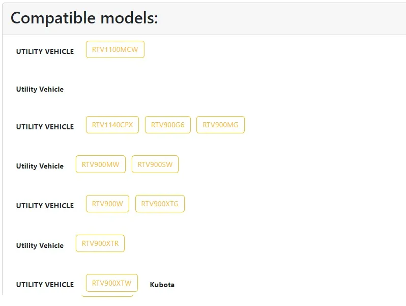 This part is compatible with a broad range of Kubota models, including but not limited to: