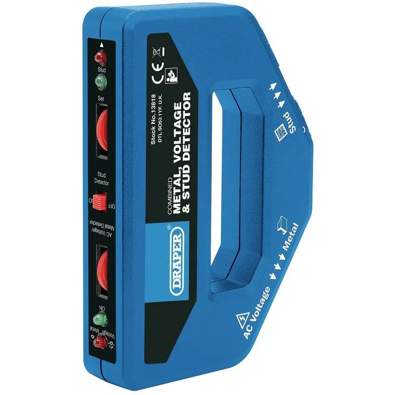 Detects live or dead electricity cables, metallic water pipes, nails and other metal objects and wood studs in partition walling which can be located without causing surface damage. Maximum depth penetration 27mm. Uses a PP3 size battery sold separately. A detailed instruction leaflet is enclosed with each tool. Display packed.