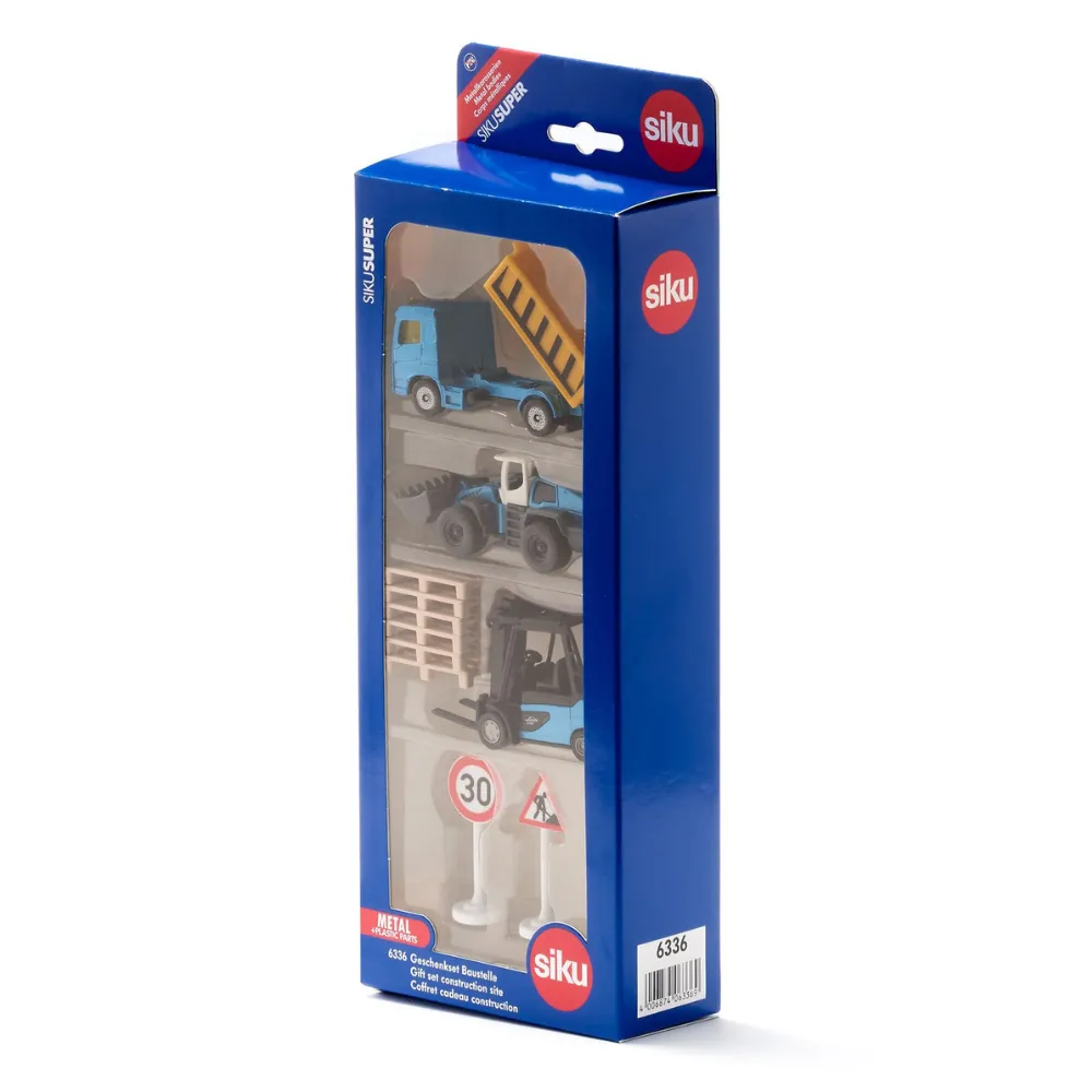 The siku construction site gift set with three of the most important vehicles on the construction site ensures an even more realistic gaming experience: the heavy truck with the large trough for transporting building materials and accessories to and from the site; the forklift truck with its strong tine arms, which seems to effortlessly lift and move even the heaviest loads; and finally the wheel loader, a powerful construction machine with a large shovel, with which he loads and transports building rubble, sand and rock in no time at all. In bright blue Kingfisher Blue Metallic paint, the three construction vehicles show: We are a team and together we can do anything - let's tackle it!