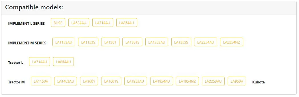 Versatile Applications: Suitable for a wide range of Kubota models and attachments.