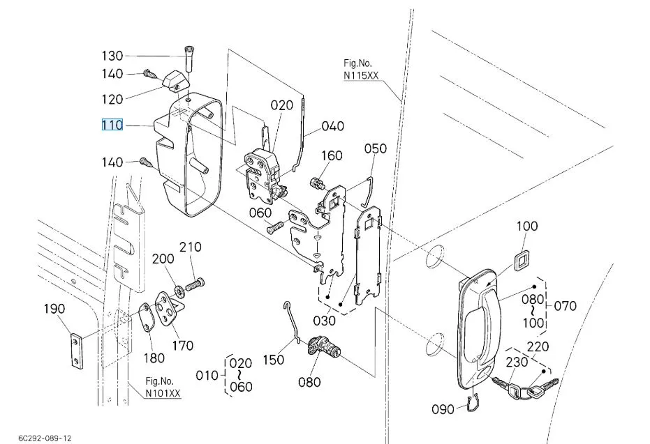 The T0270-85150 Kubota door lock cover (LH) is a factory-original part designed to shield and secure the left-hand cab door lock on a wide range of Kubota tractors. This cover offers both functional protection and aesthetic finish, helping prevent dirt, moisture, and debris from entering the locking mechanism.