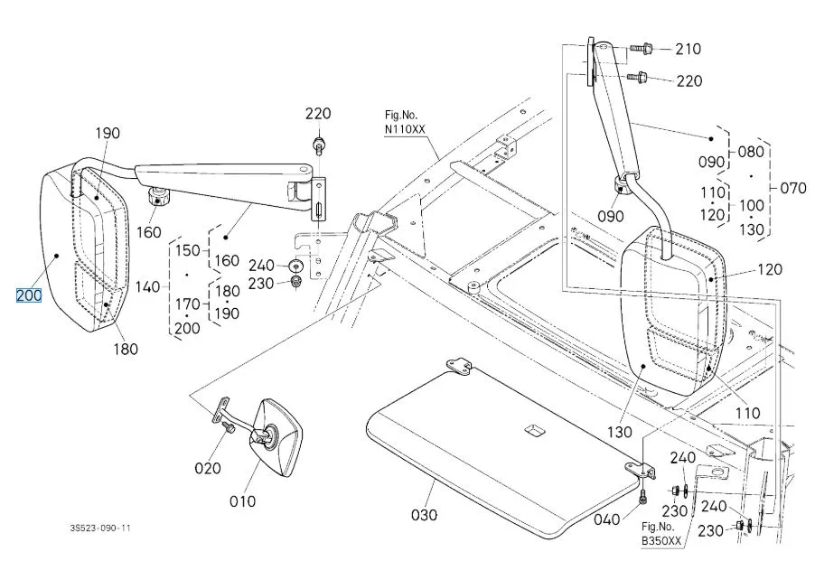 The Kubota 3J080-41810 mirror cover is a genuine part designed to protect the rearview mirror assembly on multiple M6 and M7 series tractors. This cover fits both standard and heated mirrors, ensuring proper shielding from dust, debris, and weather. Made to OEM specifications, it offers reliable fit and long-term durability.