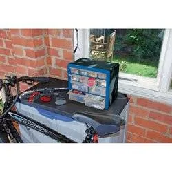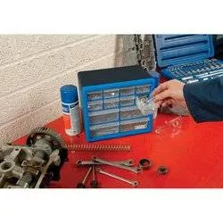 Impact - resistant plastic ideal for use in the workshop or home. Latching facility to prevent drawer falling out. Slotted holes in cabinet to facilitate wall mounting. Shrink wrapped with display sleeve.