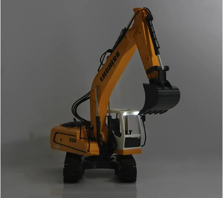 Designed with fully operable joints and a robust metal bucket, the R936 mimics authentic digger movements. The 2.4GHz radio system ensures interference-free multiplayer use, while the 660° rotating tower allows for extended digging range. LED front lights, realistic engine sounds, horn, and a reversing beep complete the immersive experience—ideal for both kids and RC construction model enthusiasts.