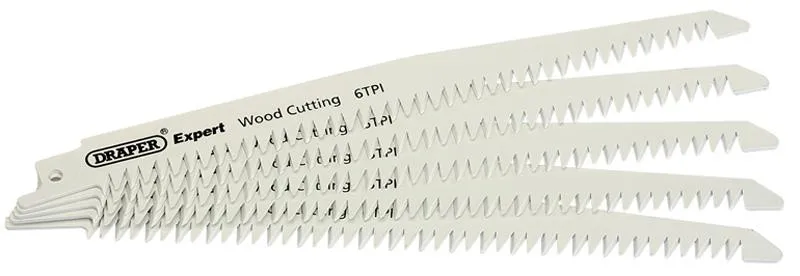 Expert 150mm 6tpi Bi-Metal Reciprocating Saw Blades for Wood Cutting - Pack of 5 Blades