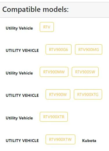 • RTV Series: RTV900, RTV900G, RTV900XTG, RTV900XTR, RTV-X900G, RTV-X900R, RTV-X900W