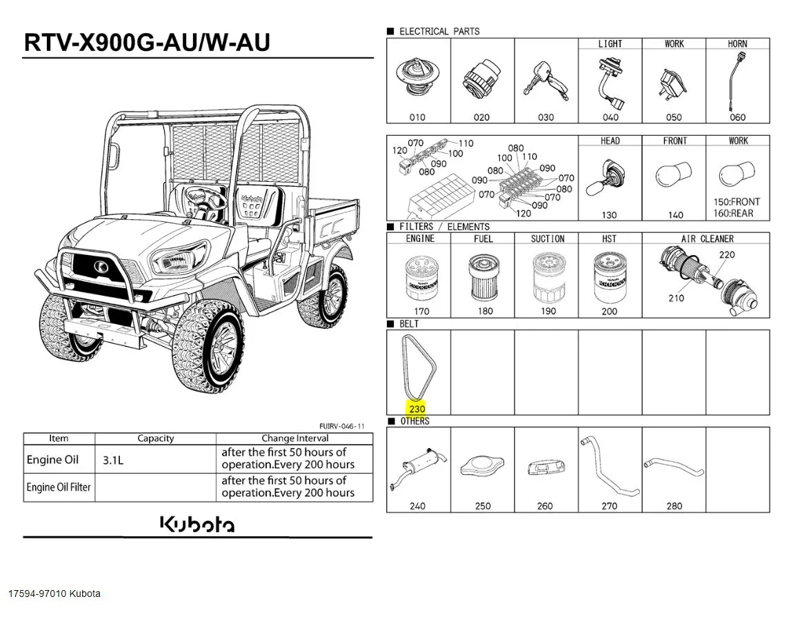 This V-belt fits a variety of Kubota RTV utility vehicles, including: