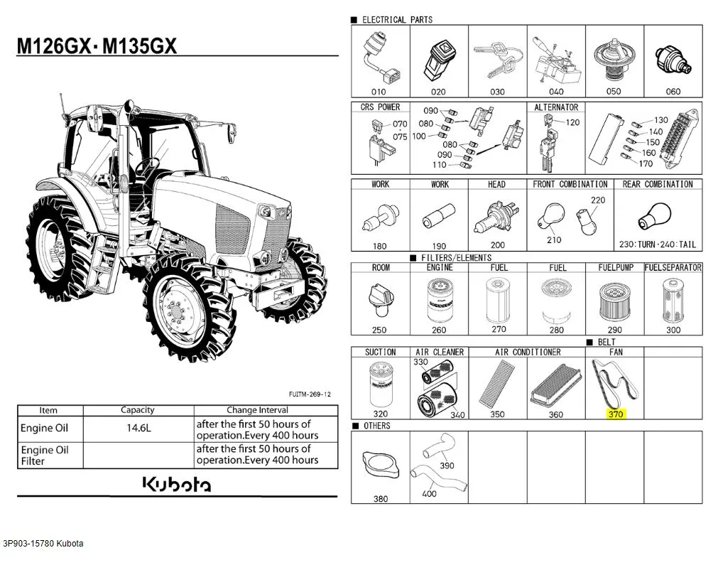 The Kubota 3P903-15780 Ribbed V-Belt is an original Kubota OEM replacement belt, designed for use in the cooling systems of various M Series tractors. This high-quality ribbed belt ensures reliable power transfer to the fan, maintaining proper engine cooling and preventing overheating under demanding agricultural workloads.