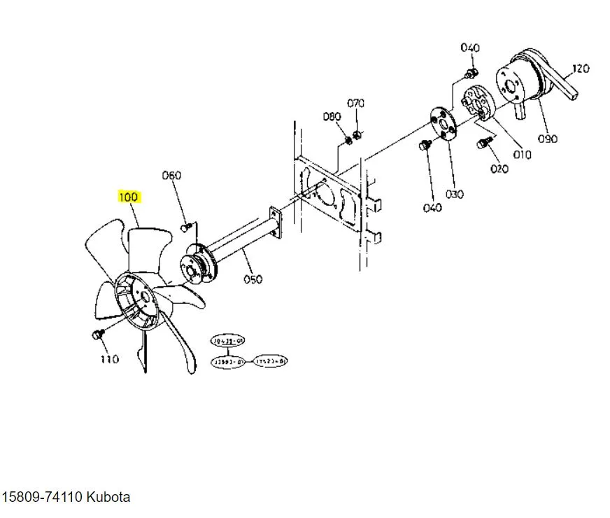 Keep your engine running cool with the Kubota 15809-74110 Fan. This genuine OEM cooling fan ensures efficient airflow through the radiator, helping regulate engine temperature during operation. Designed specifically for Kubota compact tractors and industrial equipment, it meets original factory specifications for fit and performance.