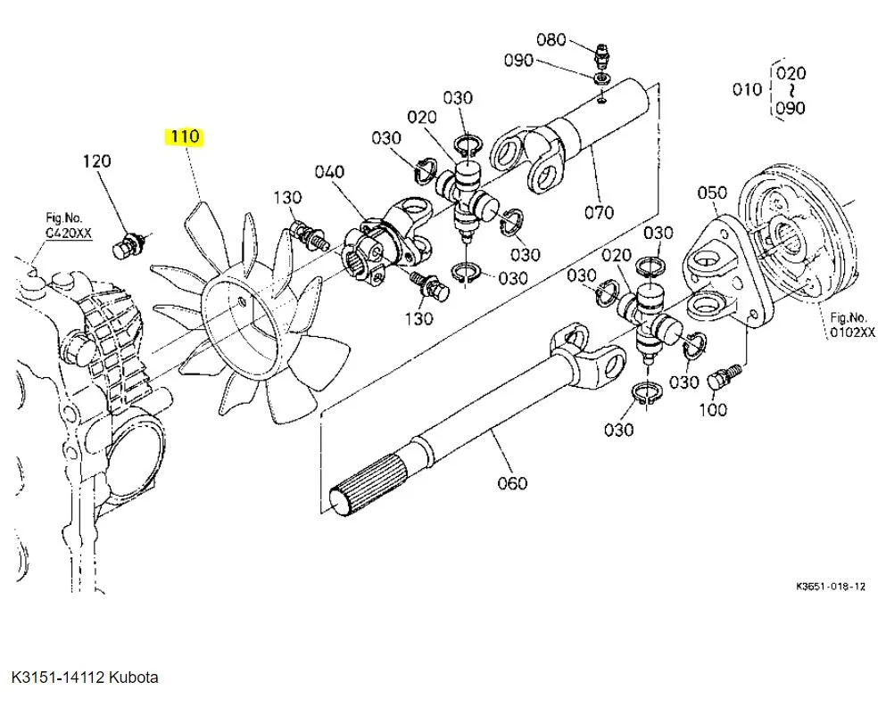 The Kubota K3151-14112 HST fan is a genuine OEM component engineered to provide critical airflow for cooling the hydrostatic transmission (HST) system. This fan is essential for maintaining transmission efficiency, especially during extended mower operation under heavy load.