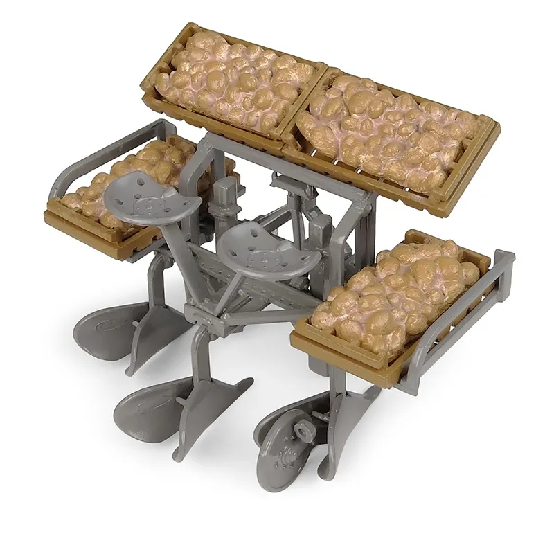 Rear hitch for the planter attachment and detailed potato crates as part of the planter set — enhancing realism for display or diorama use.