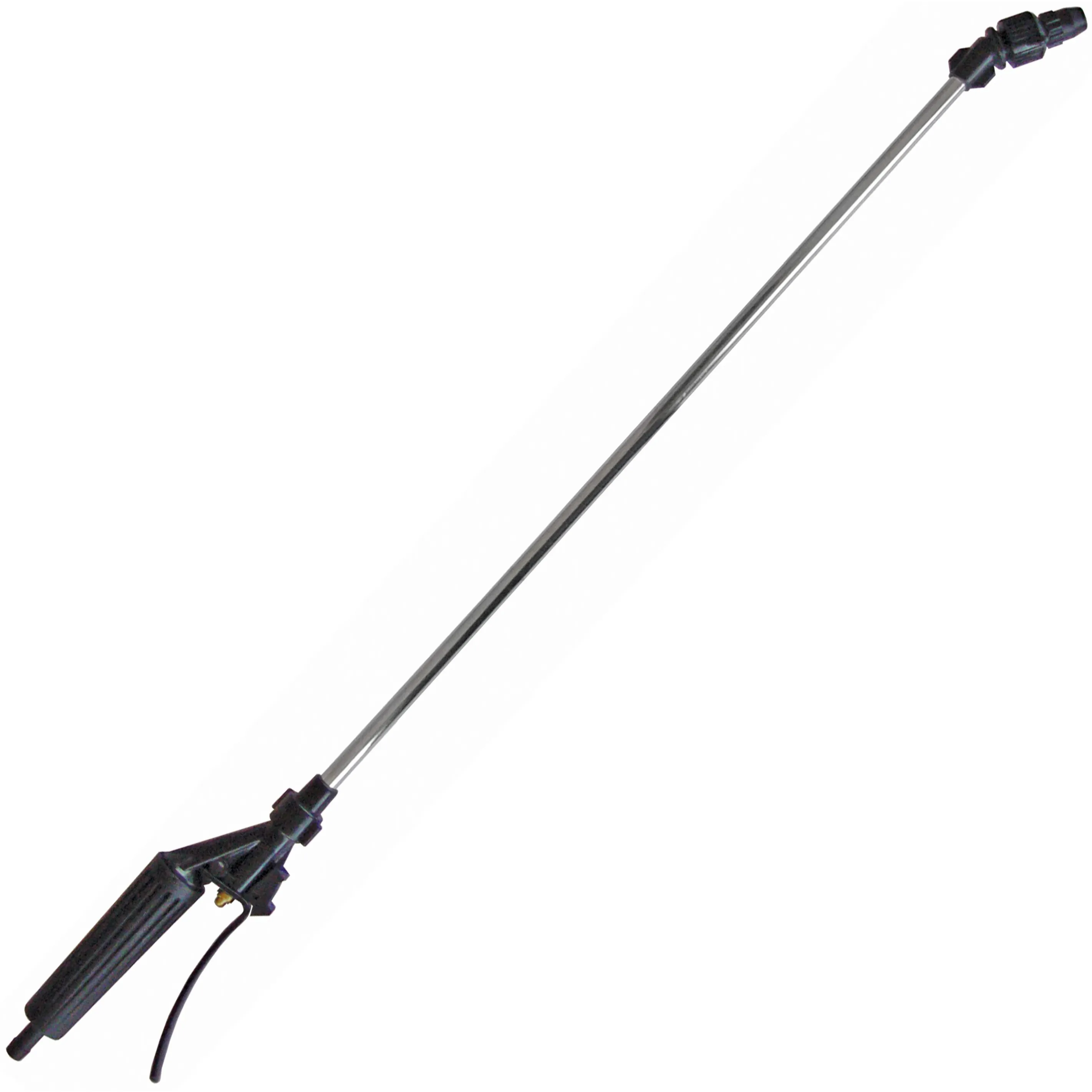 Lever grip spray wand features an aluminum lance and an adjustable polymer nozzle that delivers 30 feet of horizontal spray and 16 feet of vertical spray