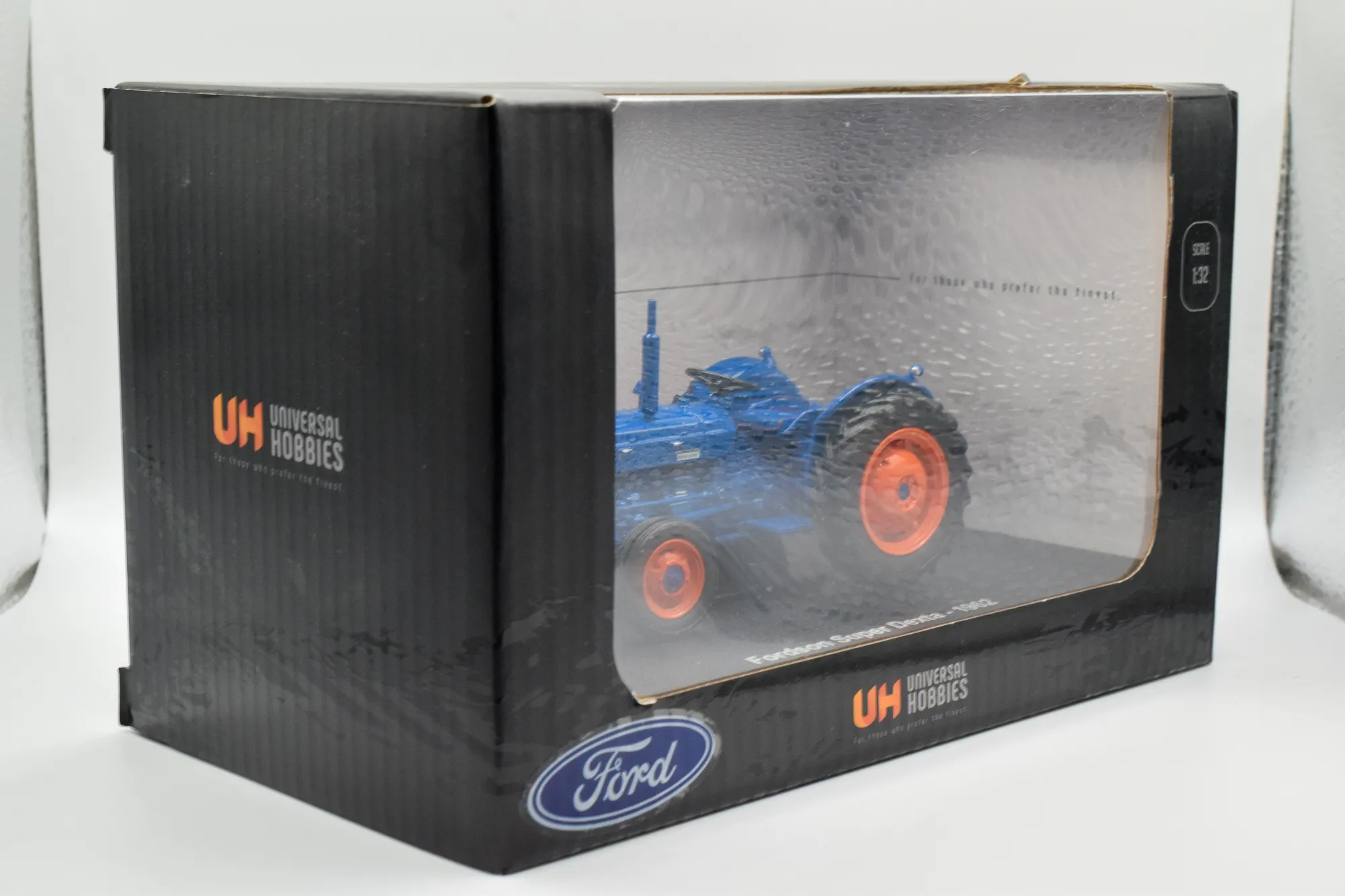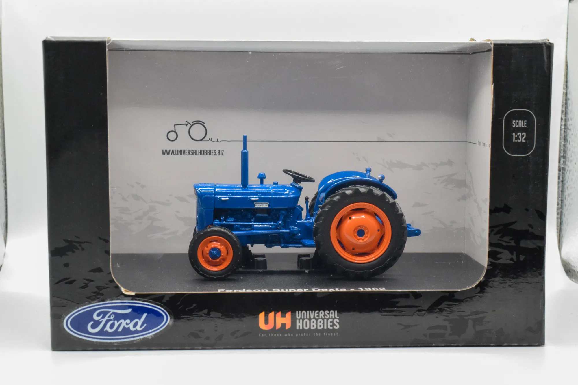 This finely rendered 1:32 scale model of the Fordson Super Dexta (1962) is produced by Universal Hobbies and is designed for collectors aged 14 and up. The original Fordson Super Dexta was built between 1962‑64 at the Dagenham plant in England, featuring a 2.5 L three‑cylinder diesel engine and about 45 hp output.