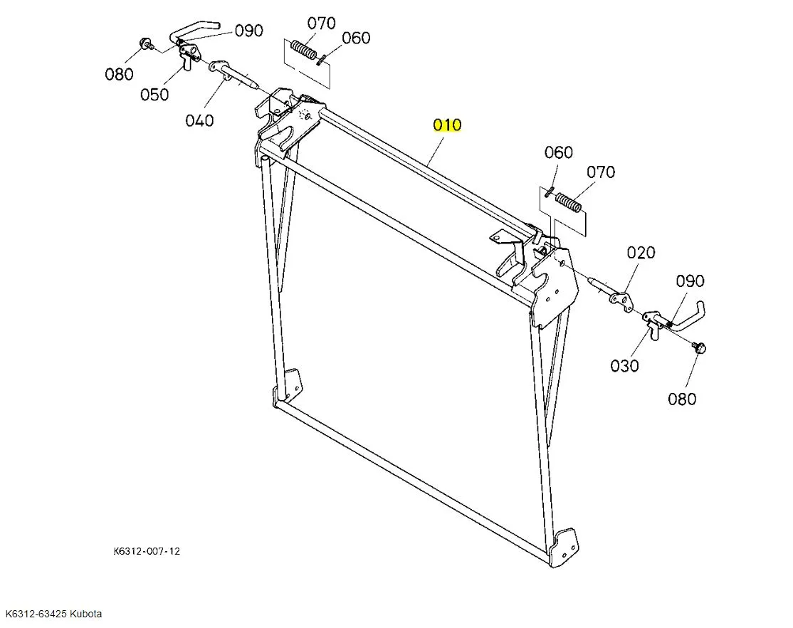 The Kubota Frame Bag Front K6312-63425 is critical for maintaining the structural integrity of the GCK-G23LD grass collector system. It ensures proper alignment and support for the front bag frame, making it ideal for professional landscapers and homeowners requiring reliable equipment.